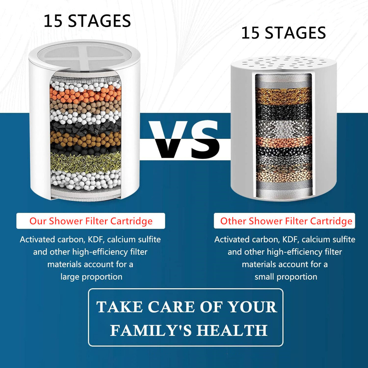 Our Multi-stages shower filter can effectively reduce chlorine, fluoride, heavy metals, rust, sand and other sediment. It effectively controls scale buildup and restores the damage caused by hard water and chemicals to your hair, skin, and nails.