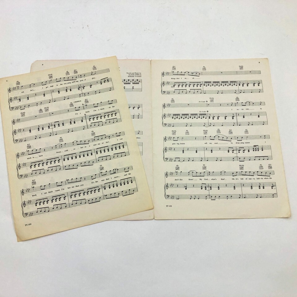 Elton John The Bitch is Back 1974 6 pages Big Pig Music Ltd Sheet Music Vintage