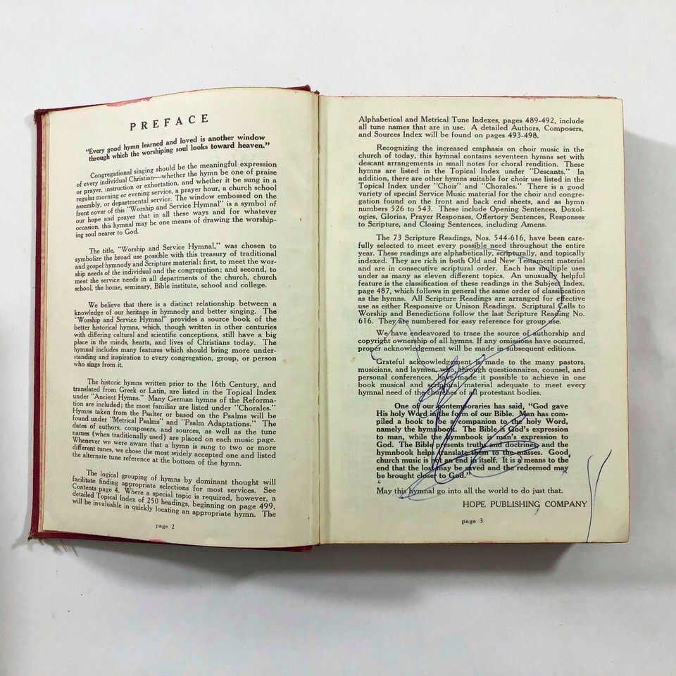 Worship Service Hymnal by Hope Publishing Co. 1957 Hardcover Vintage