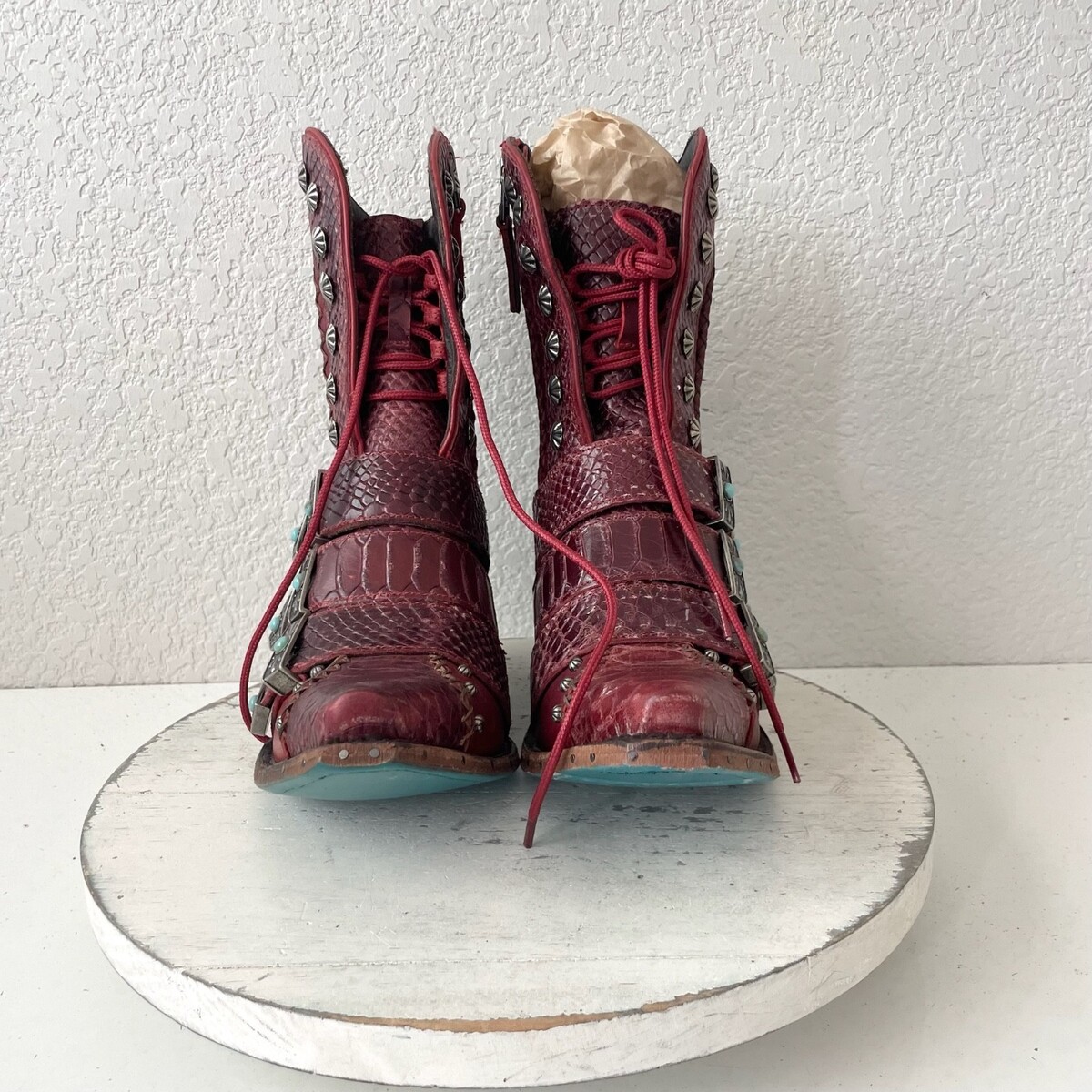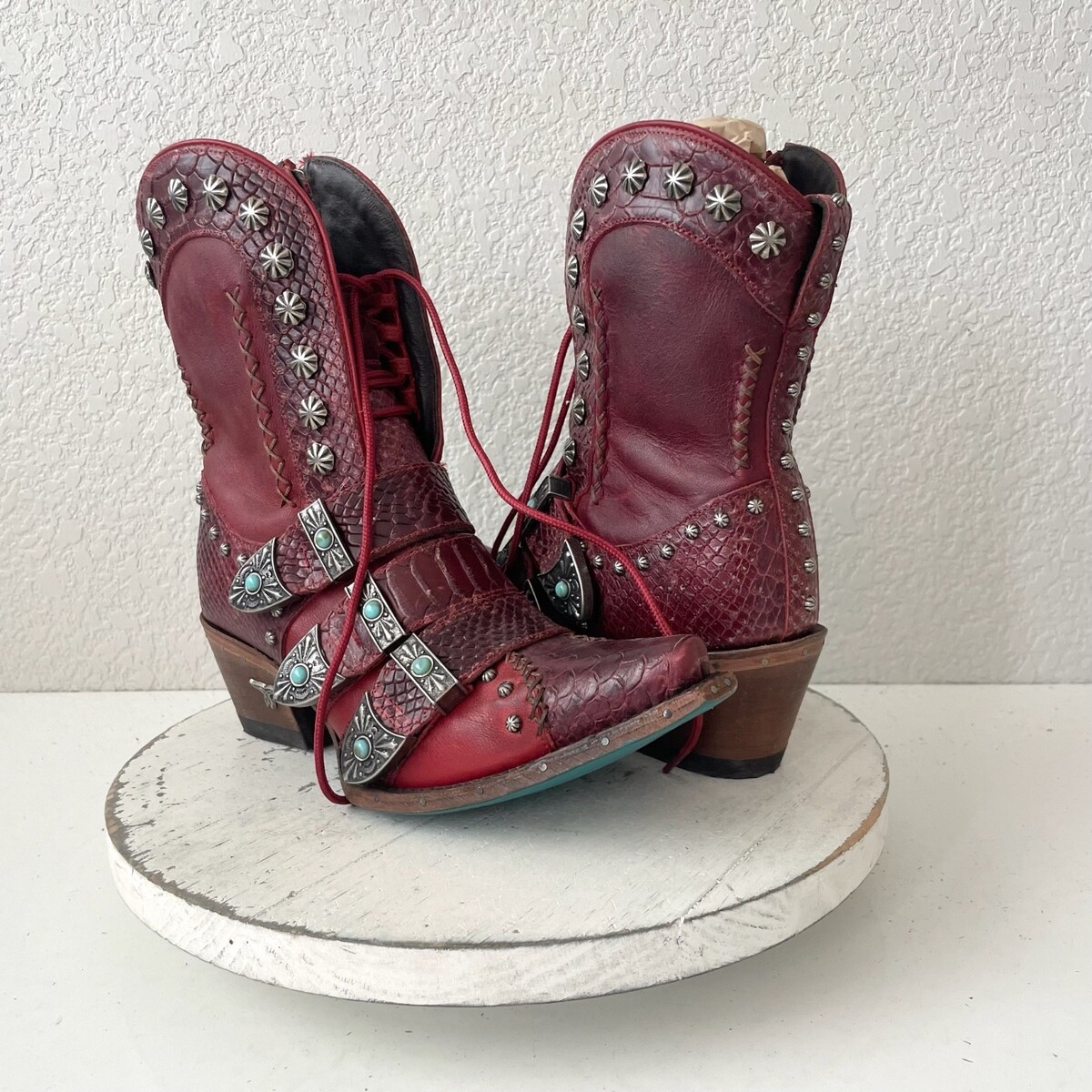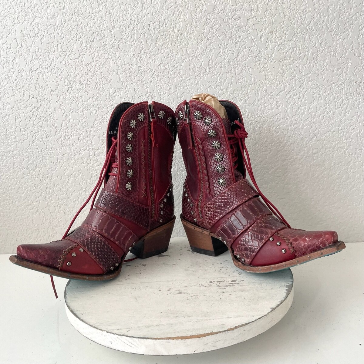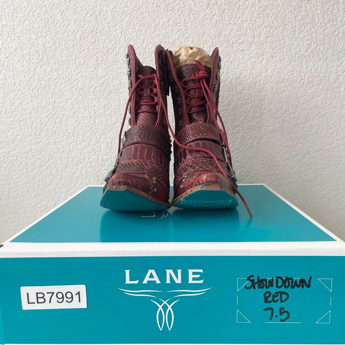Lane SHOWDOWN Womens Cowboy Red Booties 7.5 Western Cowgirl Lace-up Ankle Boots