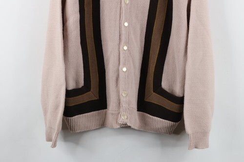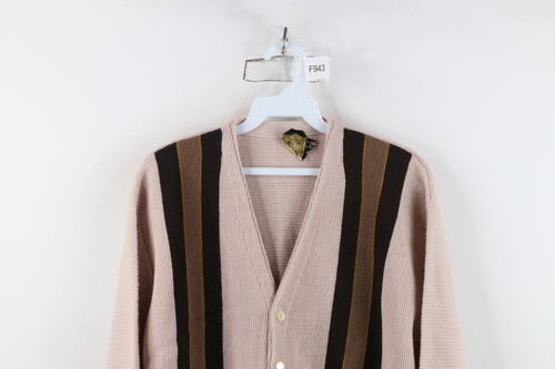 Vintage 50s Streetwear Mens Large Striped Color Block Knit Cardigan Sweater USA