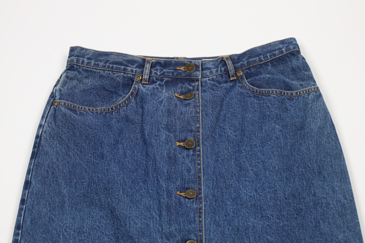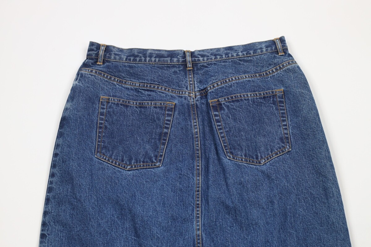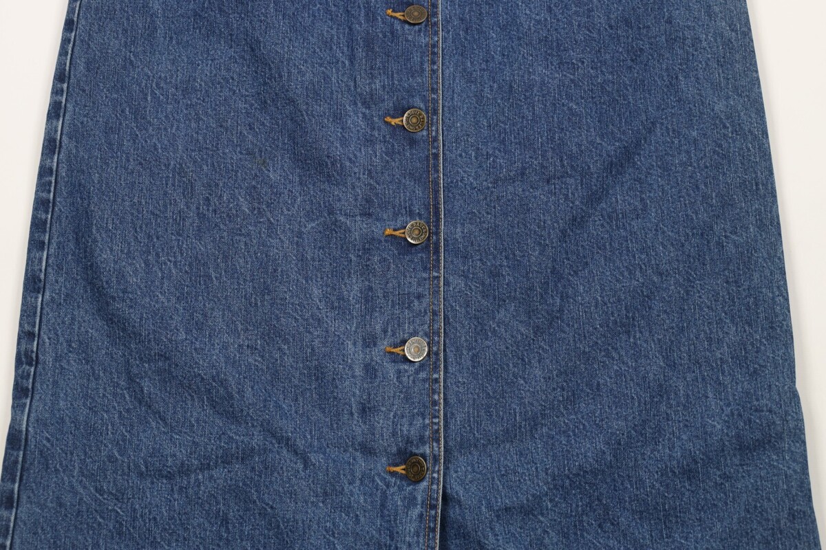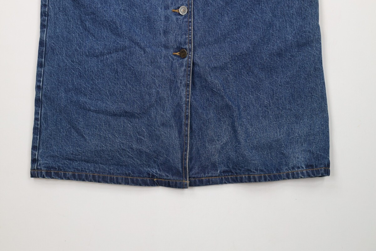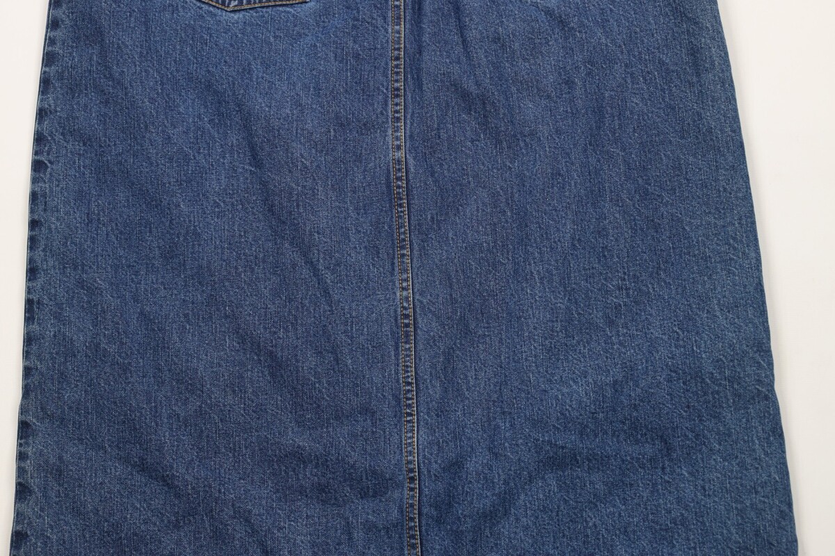 Vtg 90s Eddie Bauer Womens 8 Petite Distressed Flannel Lined Denim Maxi Skirt