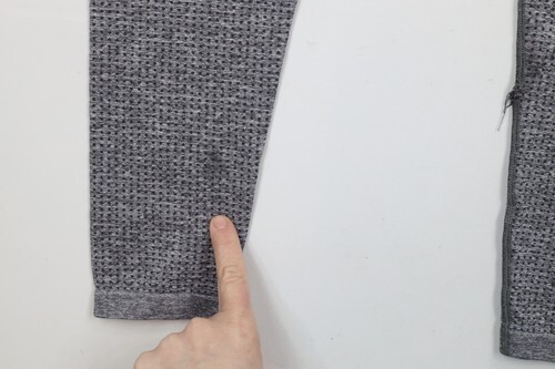 Blemish bottom right leg. Hole left leg inseam bottom. Fabric pull middle back