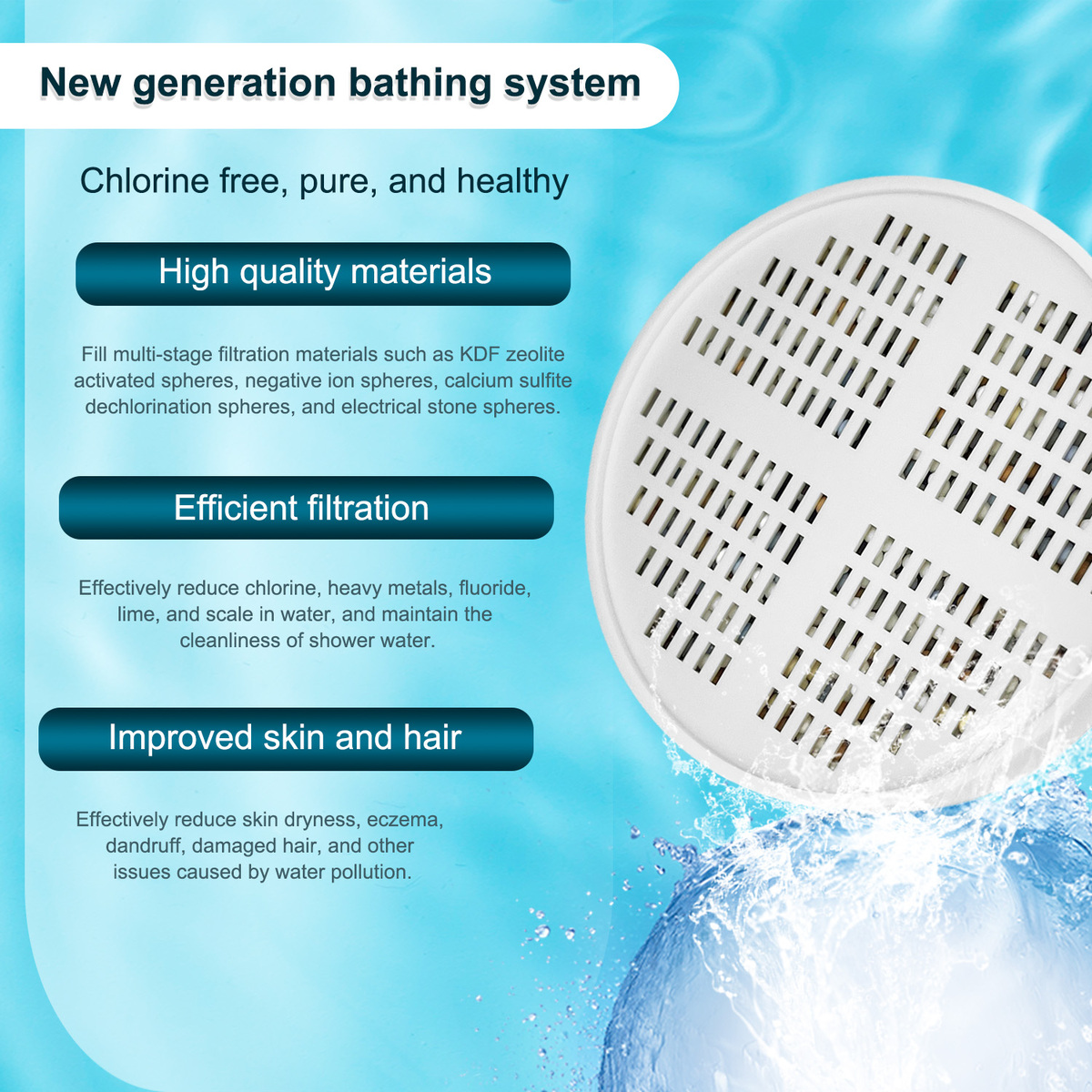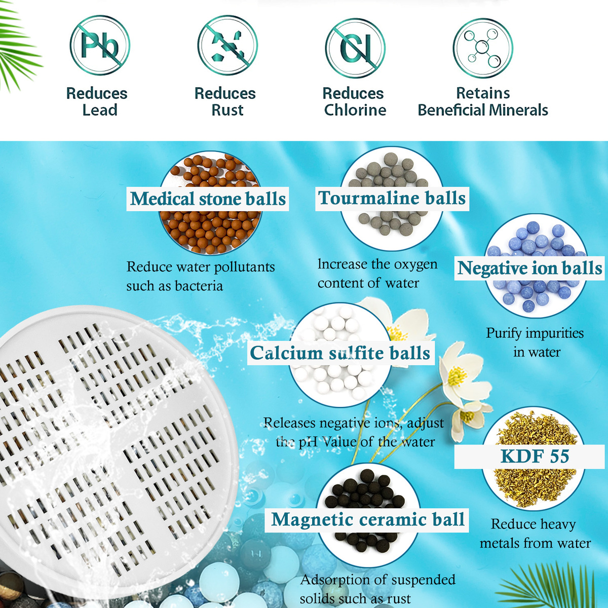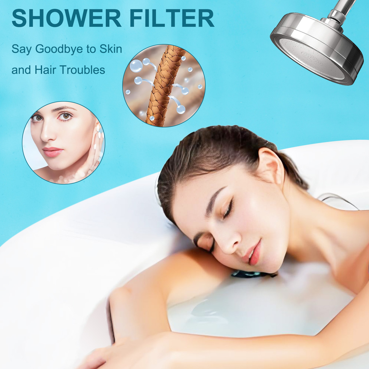 Our Multi-stages shower filter can effectively reduce chlorine, fluoride, heavy metals, rust, sand and other sediment. It effectively controls scale buildup and restores the damage caused by hard water and chemicals to your hair, skin, and nails.