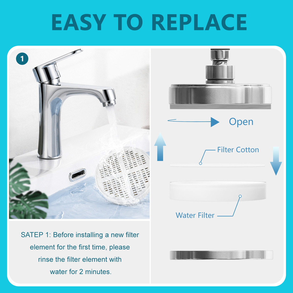 Replacing your filter takes less than 20 seconds no tools required, you just need to unscrew the shower head by hand, take out the old one and replace the new one,make sure the washer is in the slot which is inside the filter to avoid leaking.