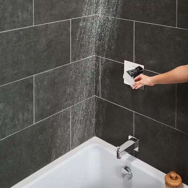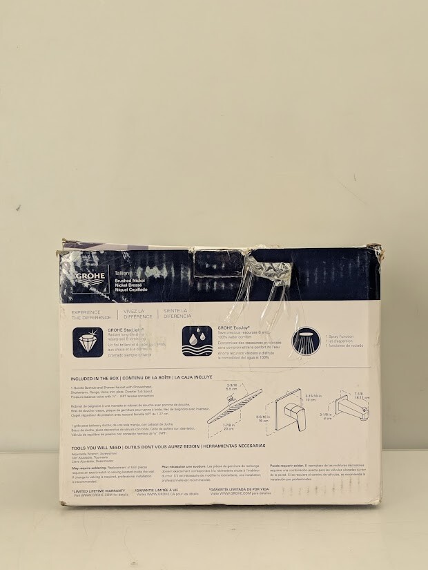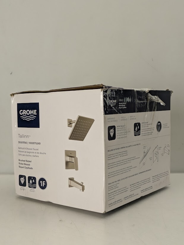 The GROHE Tallinn Single-Handle Tub/Shower in Chrome delivers both modern style and relaxation in one urban-chic set. Featuring clean lines, geometric forms and a minimalist attitude, it consists of a tub spout, showerhead, and control valve. The large showerhead is equipped with GROHE DreamSpray technology, which optimizes water distribution for a satisfying shower experience with even, consistent coverage, and GROHE SpeedClean spray nozzles, which resist limescale buildup. All are finished in GROHE StarLight Chrome, a dirt- and scratch-resistant finish that requires little maintenance and will look good as new even after decades of use.