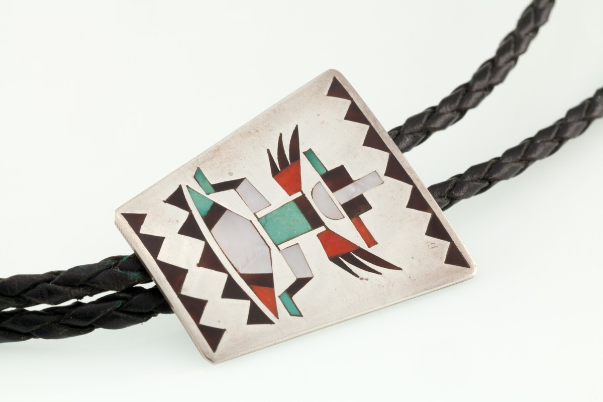 Vintage Zuni Pajaro Plata de Ley Incrustacion Bolo Corbata