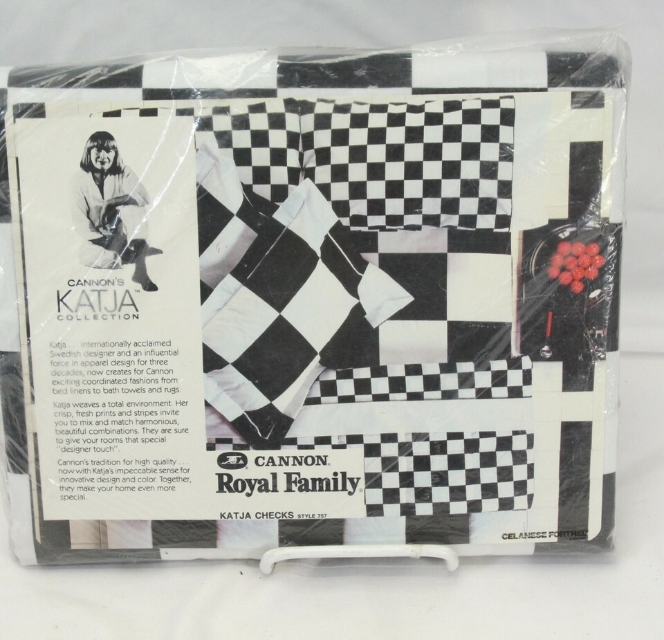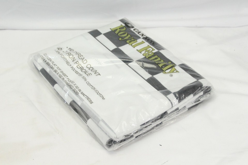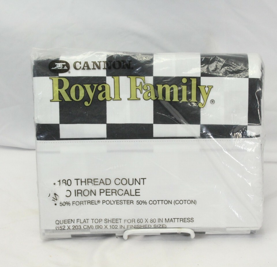 Cannon Royal Family Katja Queen Flat Sheet Checks Black White Auto Racing