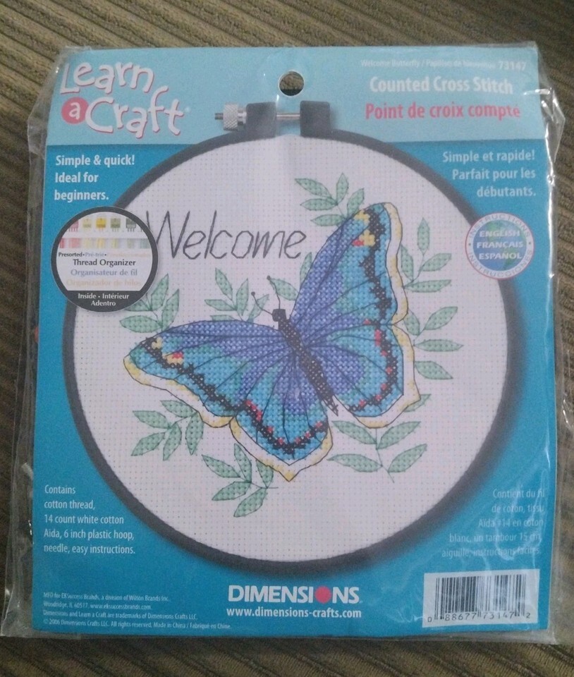 Dimensions Learn-A-Craft Welcome Butterfly Counted Cross Stitch Kit-6" Round 14