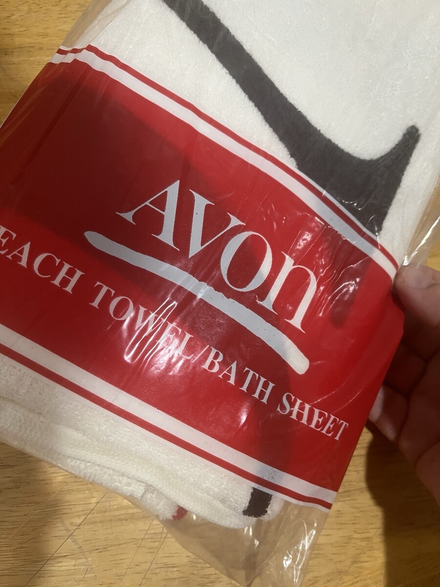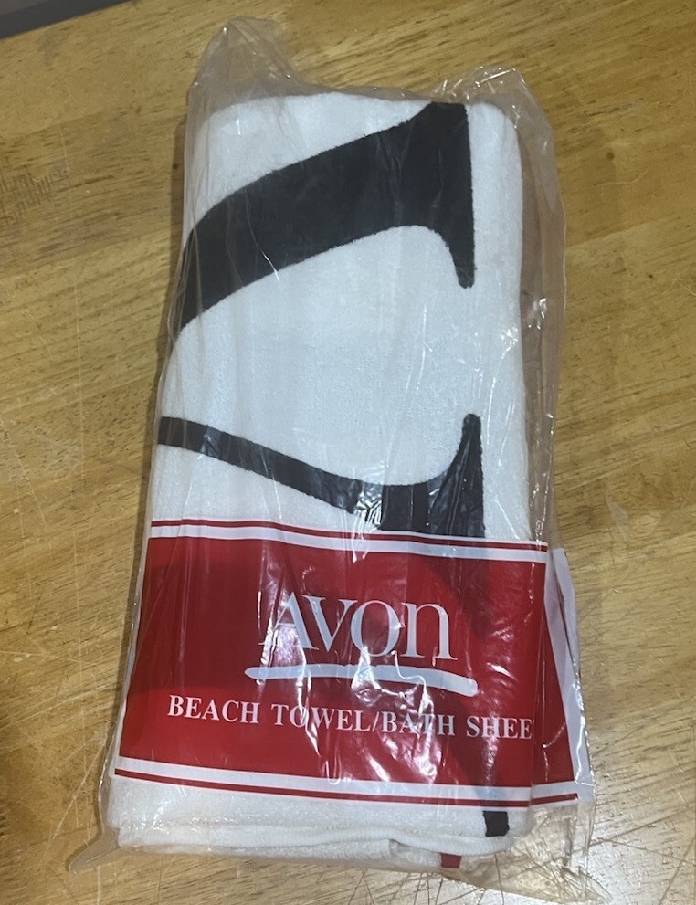 Vintage 1990 Avon Beach Towel/Bath Sheet Avon Spell-Out 54"x35" White NOS