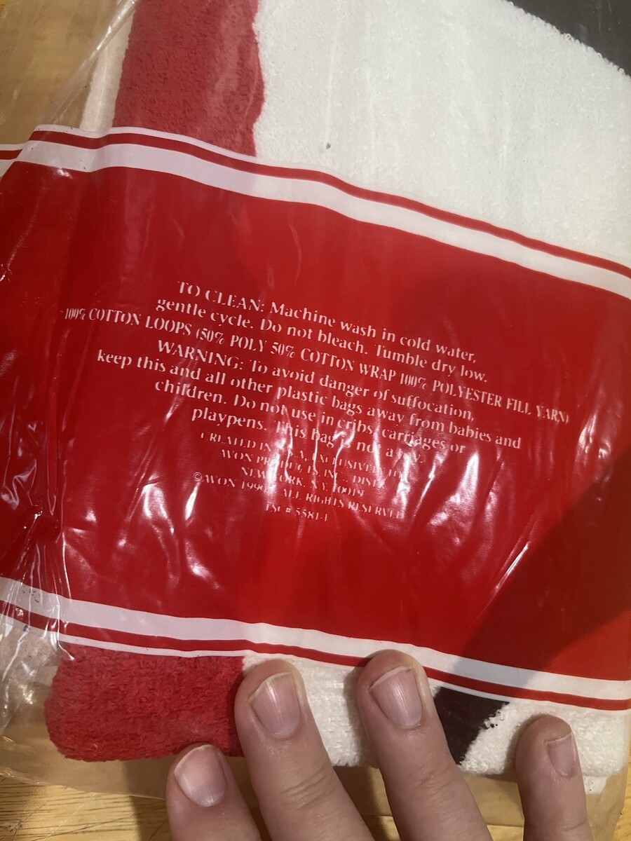 The Vintage 1990 Avon Beach Towel/Bath Sheet is a nostalgic and stylish addition to any collection of linens and textiles. Featuring the iconic Avon logo in red and white, this 54" x 35" rectangular towel is perfect for beach days or lounging by the pool. Made of a comfortable cotton and polyester blend, this Avon spell-out towel is a timeless piece from the 1990s, ideal for teens, adults, and kids alike. Machine washable for easy care, this United States-made towel is a must-have for Avon enthusiasts and collectors alike.