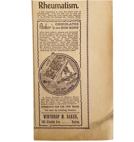 Winthrop Baker Chocolate Bon Bons Advertisement 1899 Victorian Boston Mass DWEE3