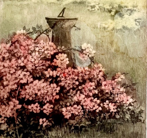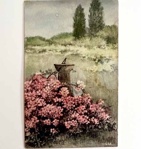 Sundial Pink Flowers Victorian Greeting Card Postcard 1900s PCBG11B