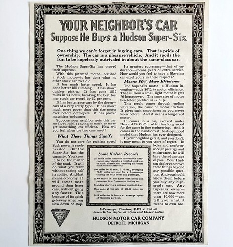 1916 Hudson Motors Super Six Neighbors and 22 similar items
