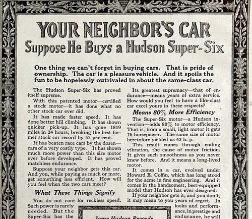 1916 Hudson Motors Super Six Neighbors Advertisement Automobilia Ephemera DWMYC3