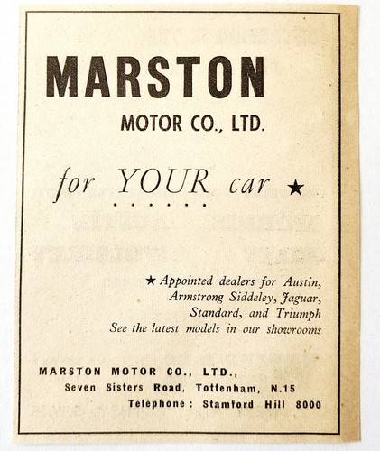 1954 Marston Motor Co Tottenham Dealership Advertisement Automobilia E89G1