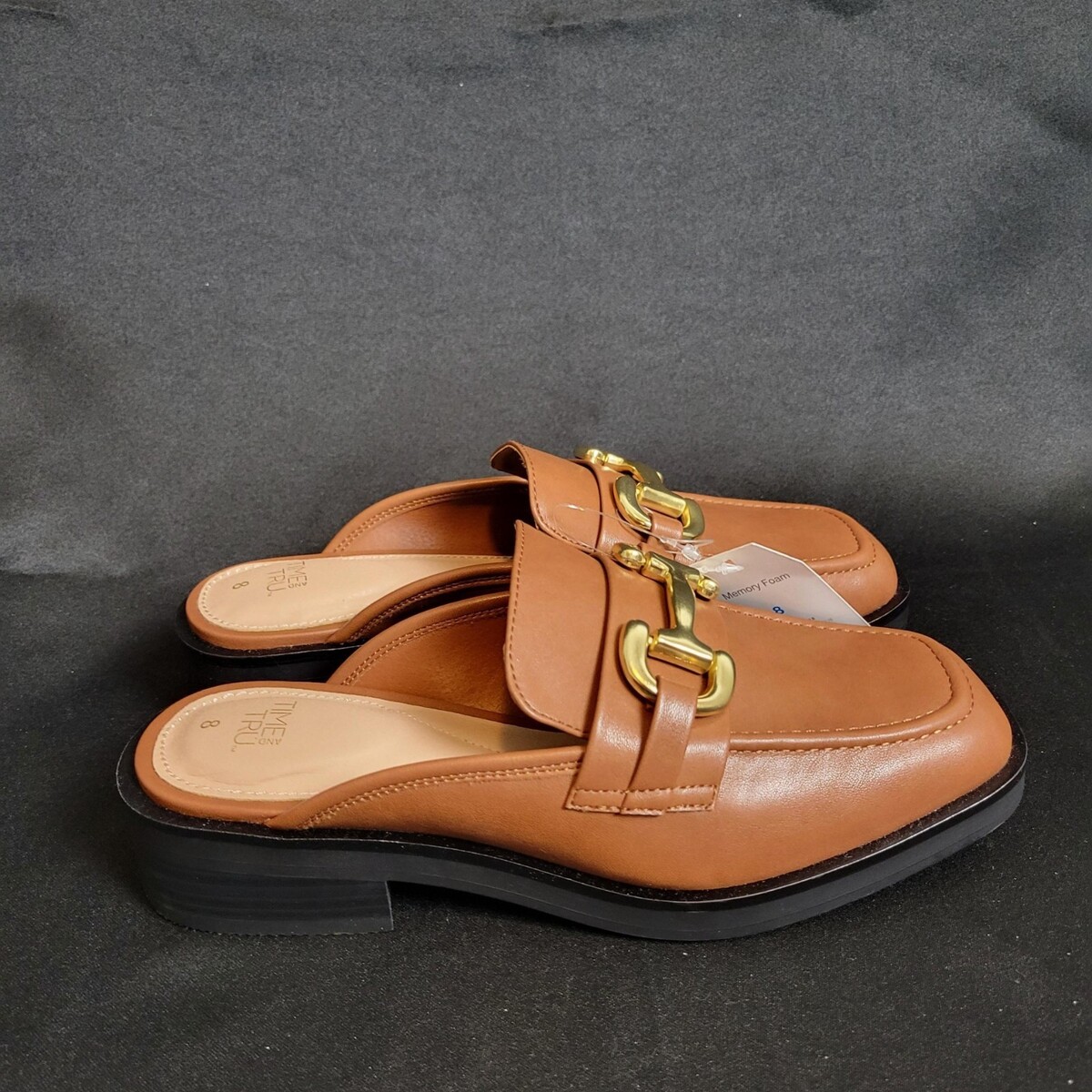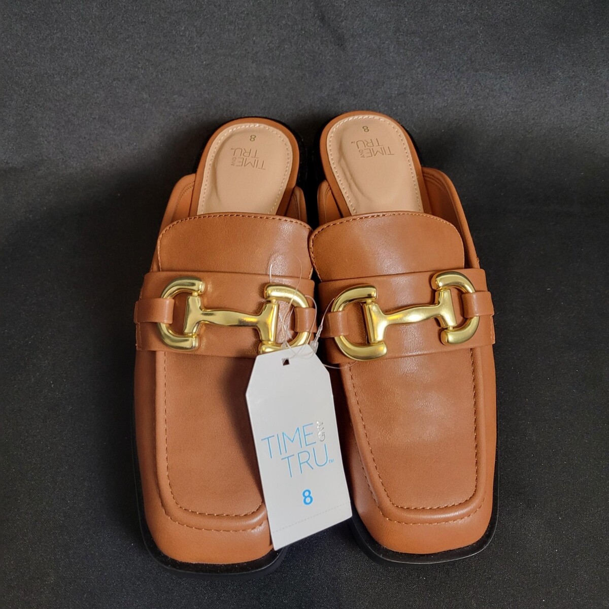 Time and Tru Women's Backless Loafer Mules 8 M Tan NWT Memory Foam Comfort
