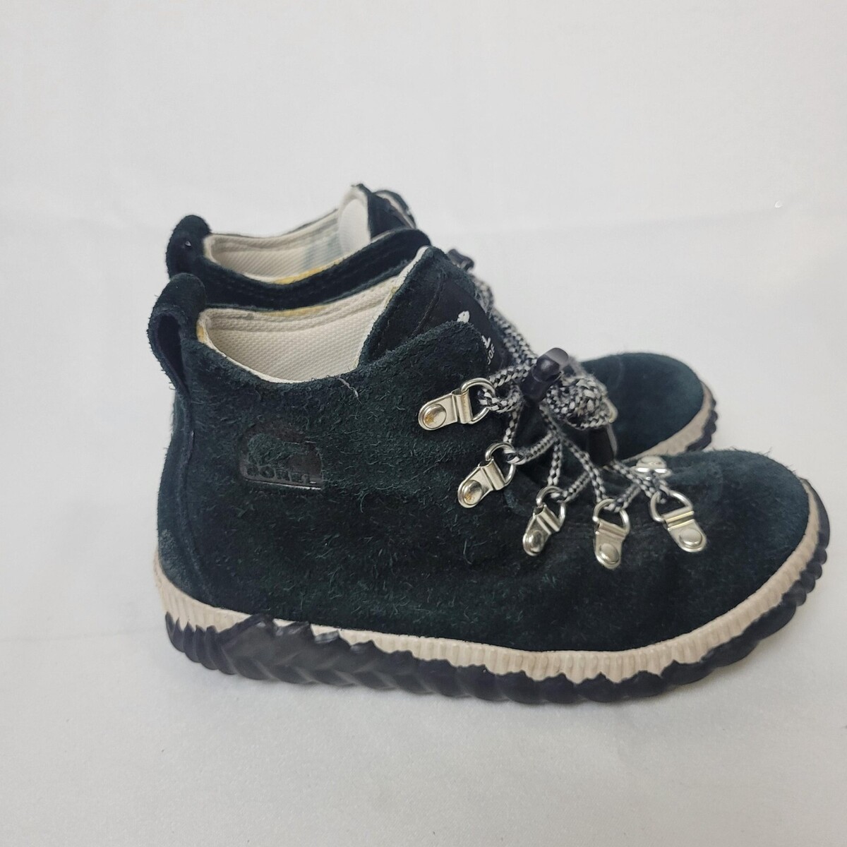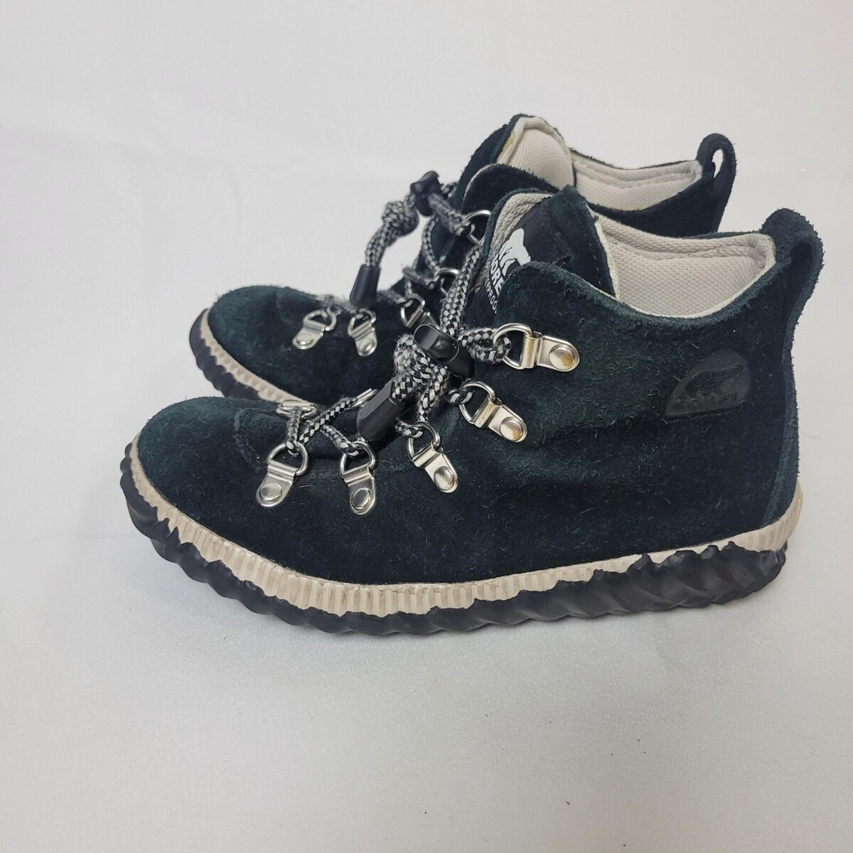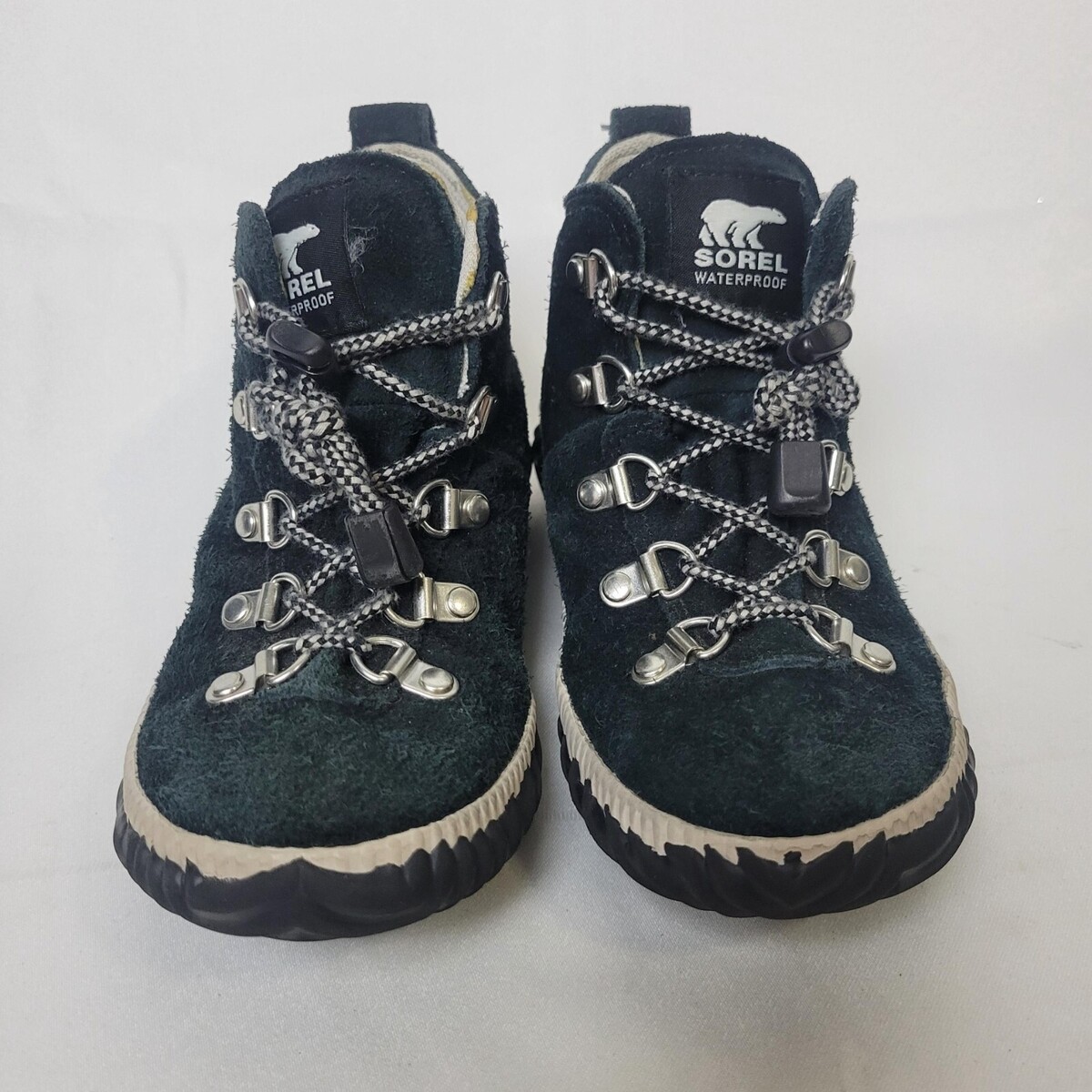 Sorel Waterproof Out N About Conquest Black Suede Bungee Lace Boots-Youth 1 Shoe