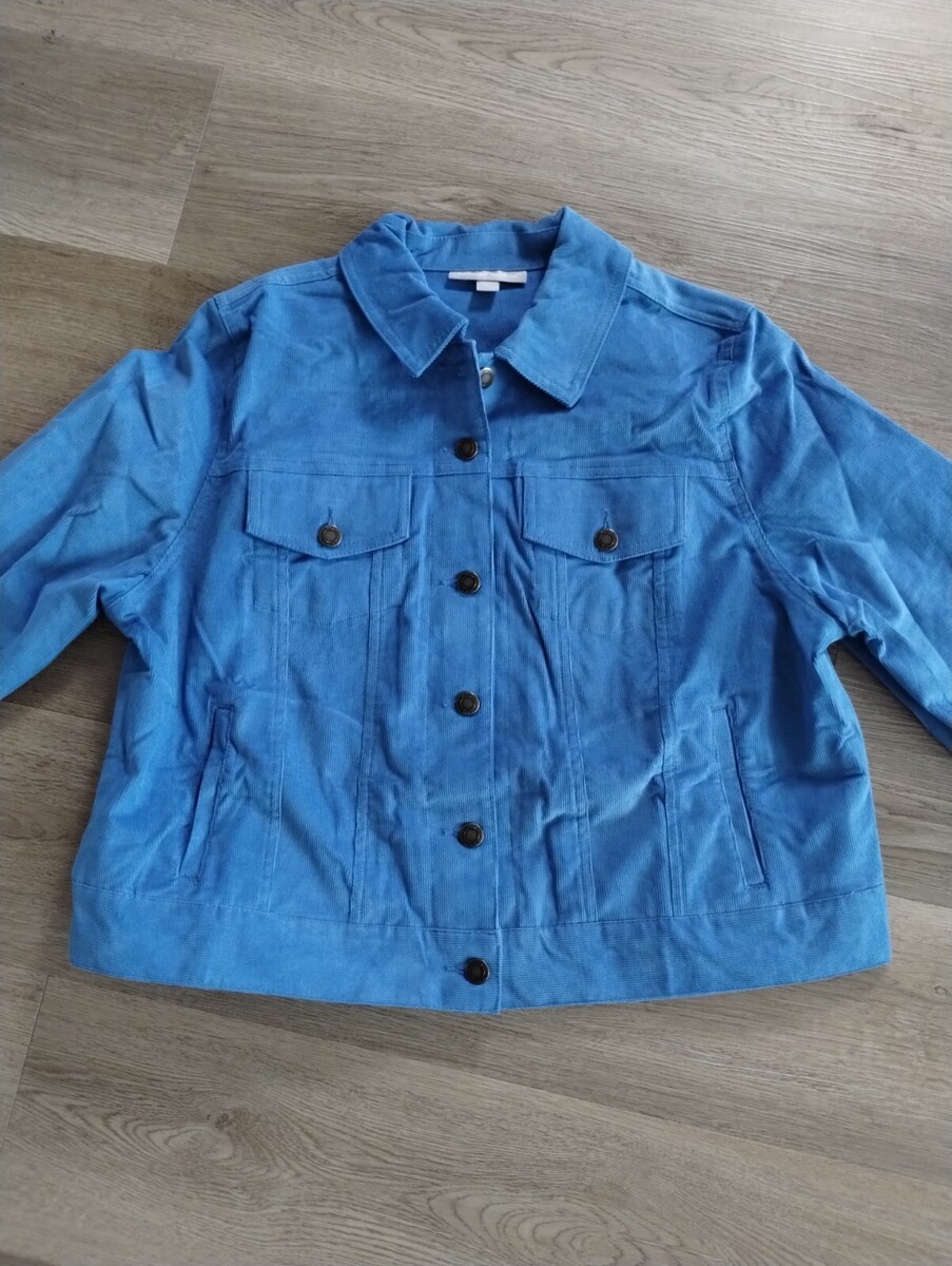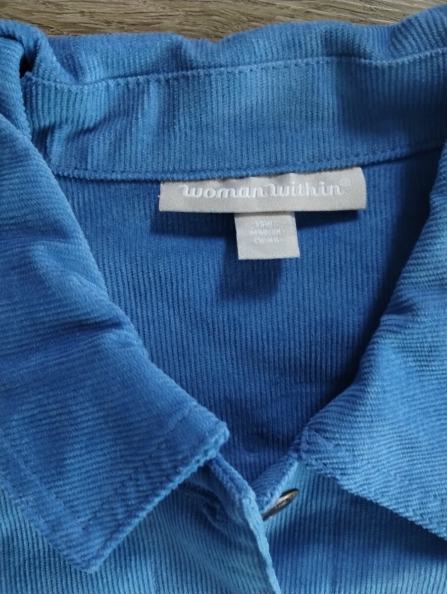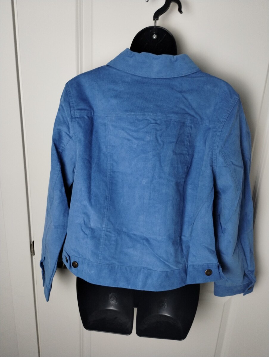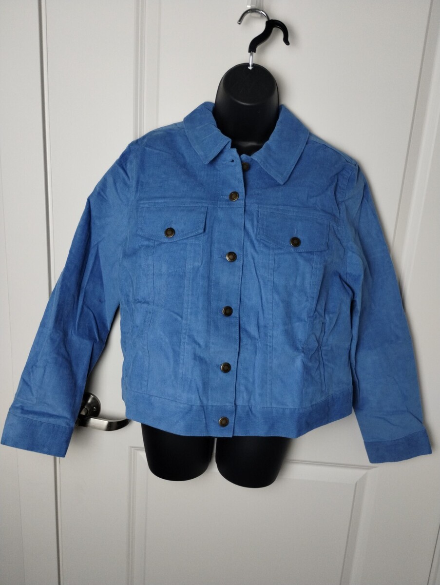 New NWOT Woman Within Button Up Jacket Womens Sz 12W Blue Corduroy Denim Stretch