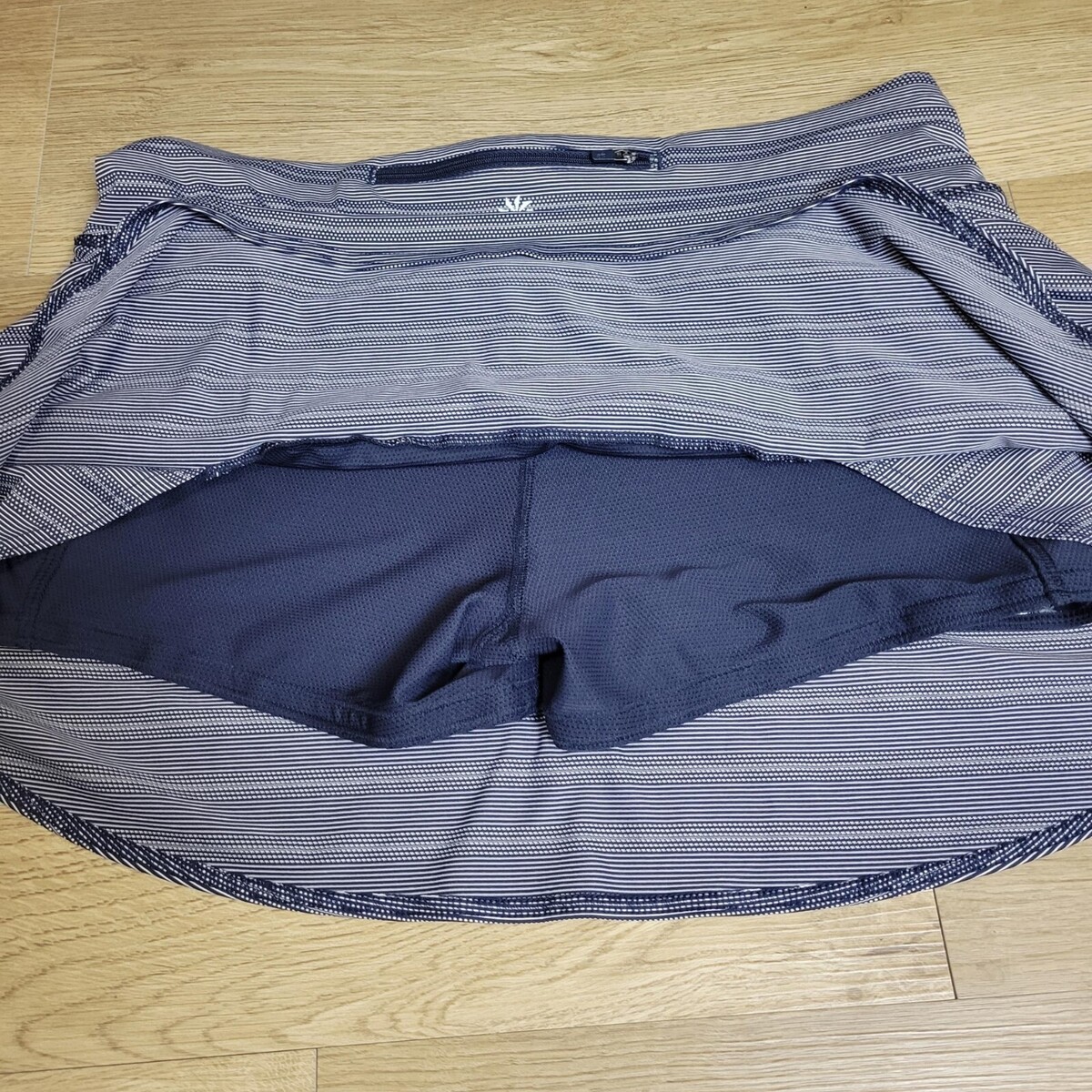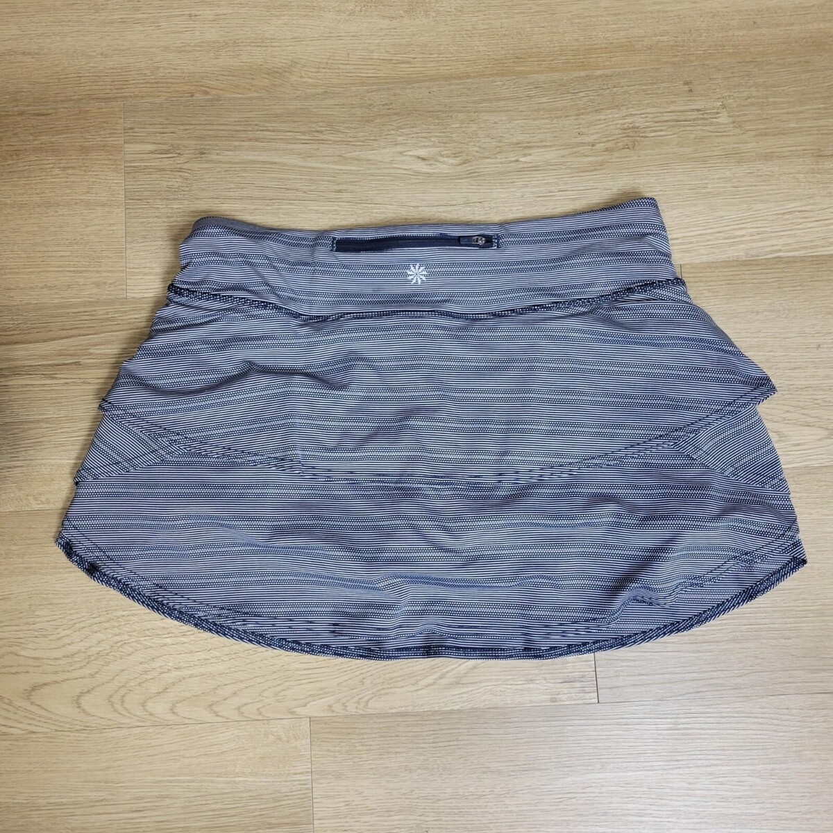Athleta Skort Womens Large Navy Swagger Tiered Back Zip Pocket Athletic Striped