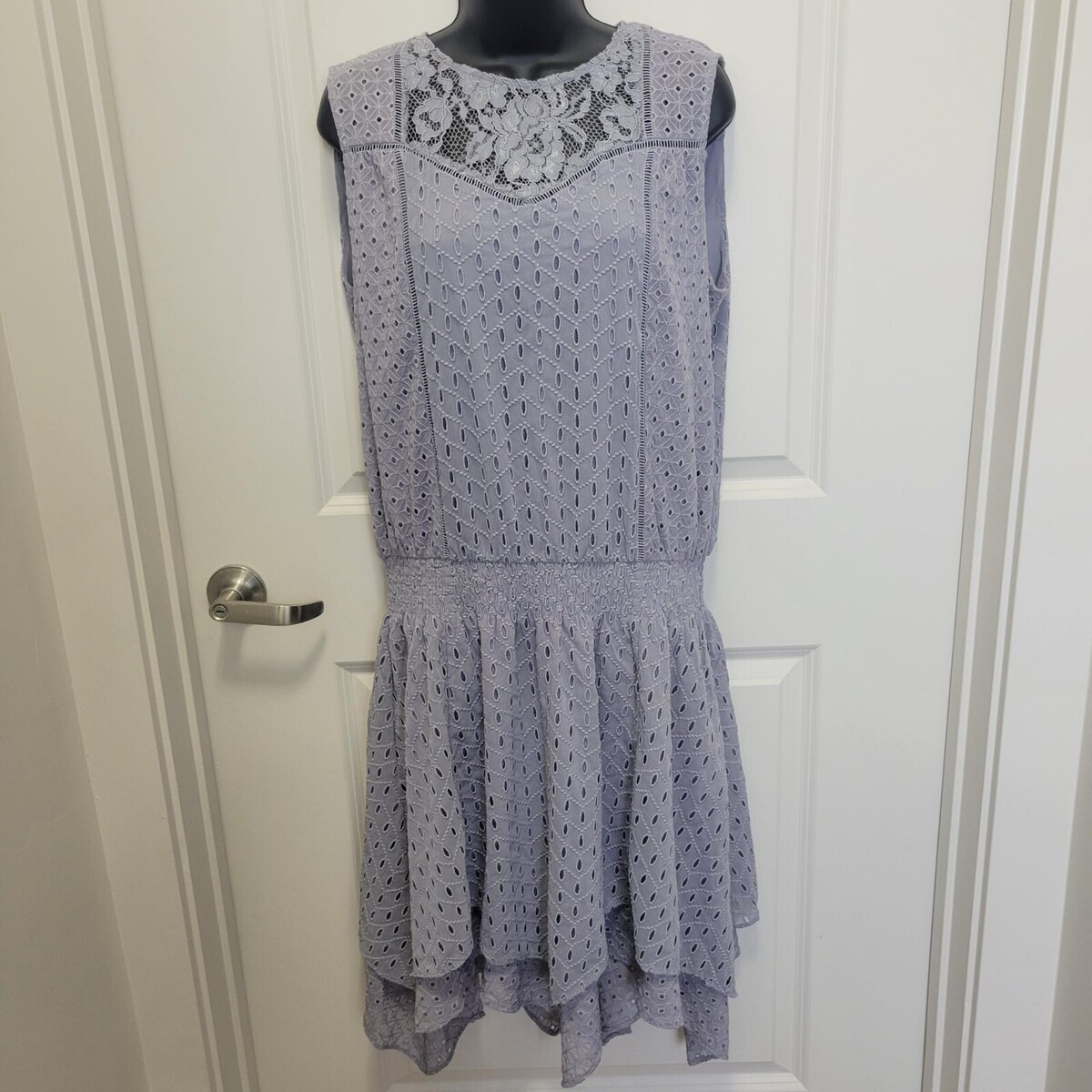 NWOT Sundance Lavender Eyelet Lace Dress Large Handkerchief Hem Summer Spring