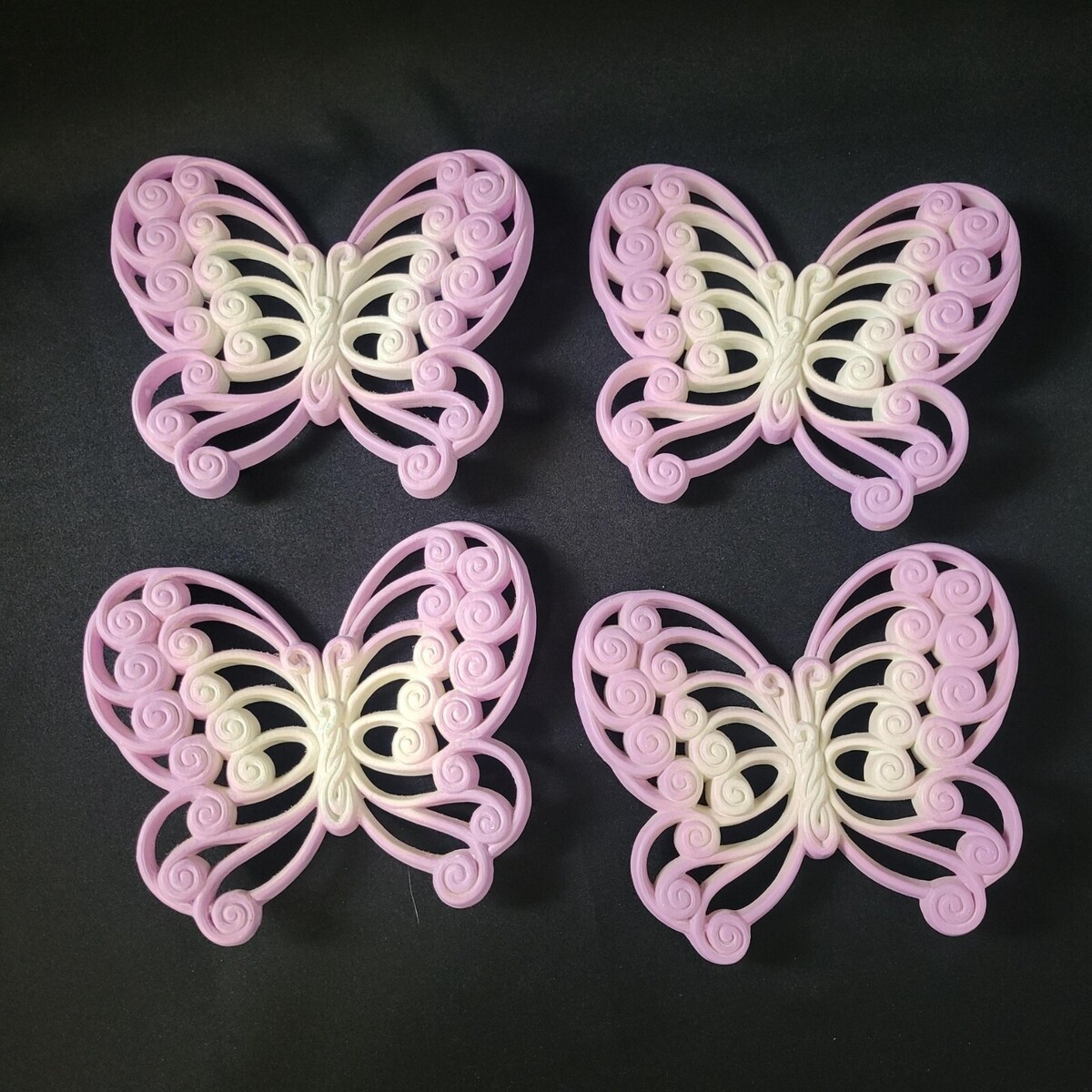 (4) Burwood Production Company Vintage Purple Butterfly Wall Hangings 1970's