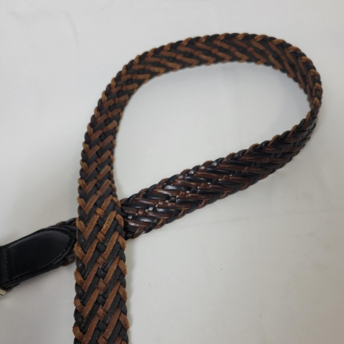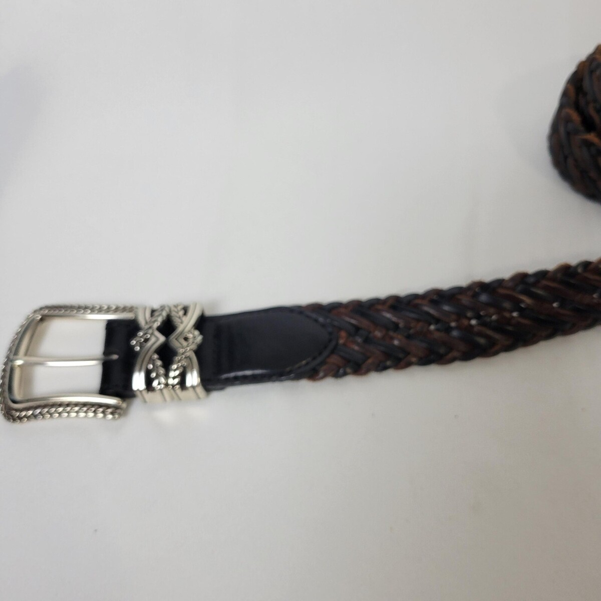 VTG BRIGHTON Belt Womens M 30 Genuine Leather Woven Braided Whiskey Tan Silver