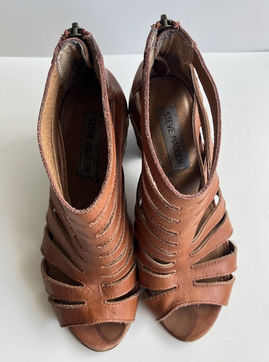 Steve Madden Womens Vendetaa Gladiator Brown Leather High Strappy Sandal 6.5 B