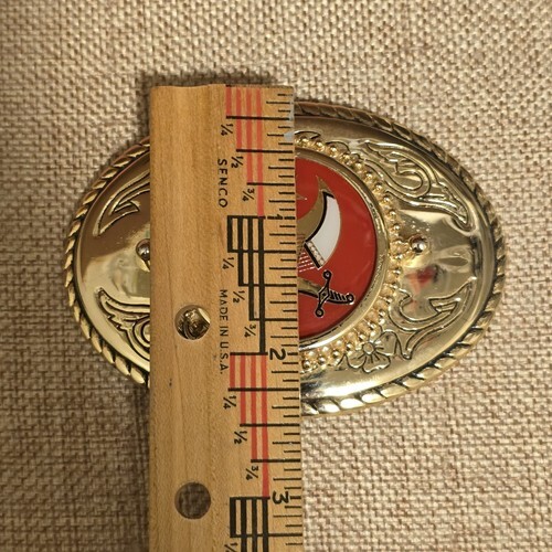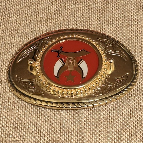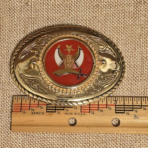 Vintage Shriners Logo Masonic Gold Tone & Red Oval Belt Buckle Made in USA
