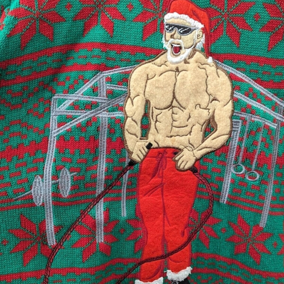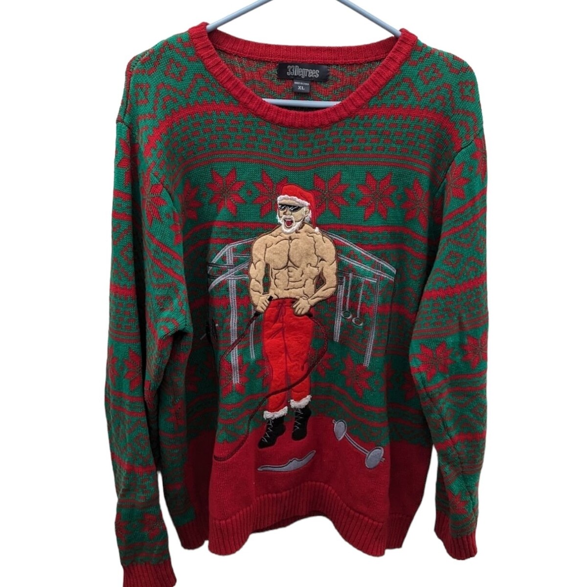 33 Degrees Gym Rat Jump Rope Buff Santa Ugly Christmas Sweater Extra Large XL