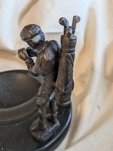 Bronze Golf Golfer Sculpture Black Marble Ashtray Pin Tray 6 in Tall