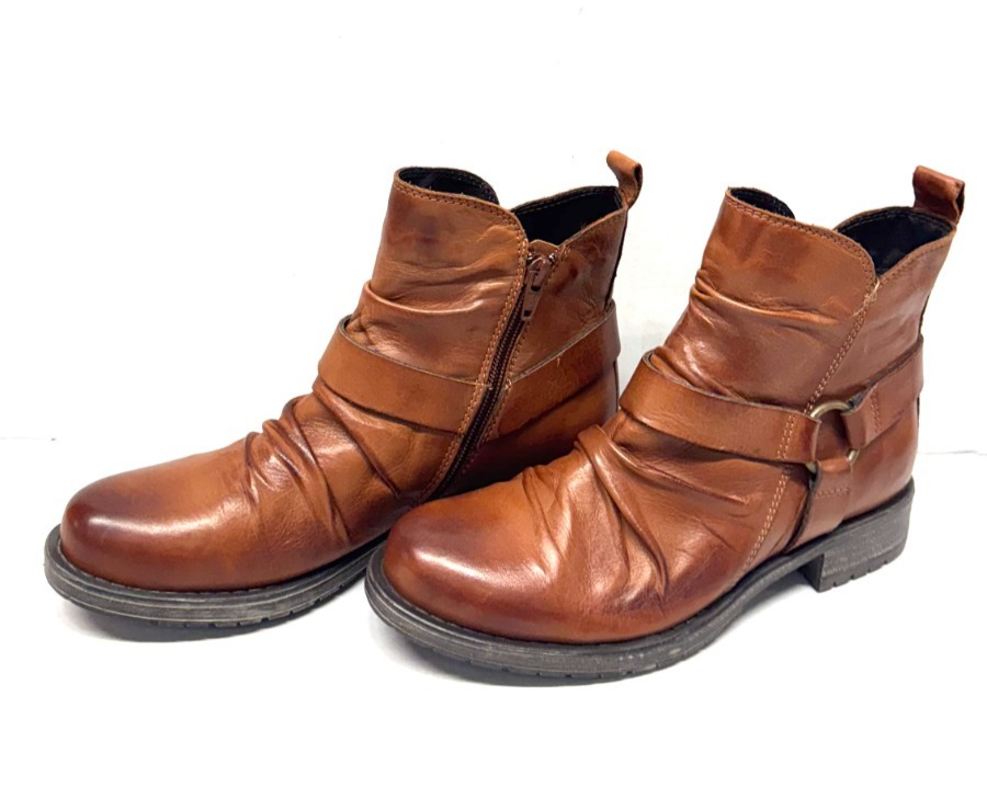 MIZ MOOZ RUCHED SOFT LEATHER BOOTIE SIDE ZIP BUCKLE 37EU / 7US SADDLE Z-104