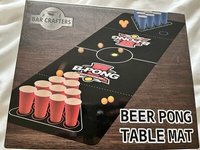 Description: The Party Games Beer Pong Table and Mat, made by Bar Crafters in China, is a fun and entertaining addition to any indoor game night. The table and mat provide everything needed for a game of beer pong, making it easy to set up and start playing. With its durable construction and compact design, this set is perfect for hosting gatherings or game nights with friends. Enjoy hours of laughter and friendly competition with this exciting party game set.