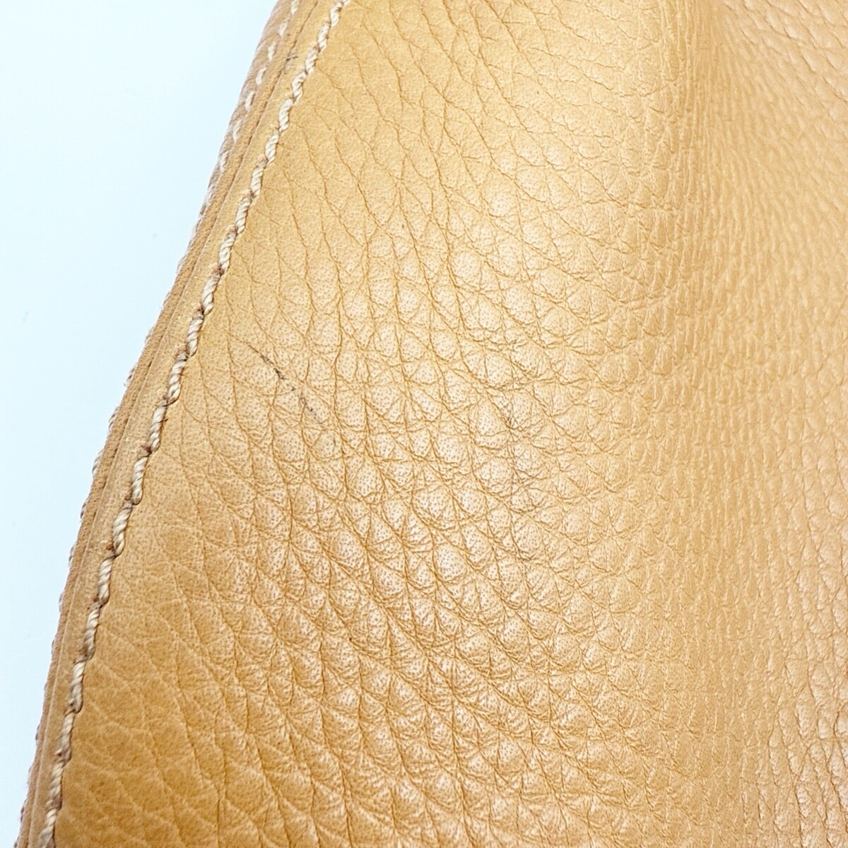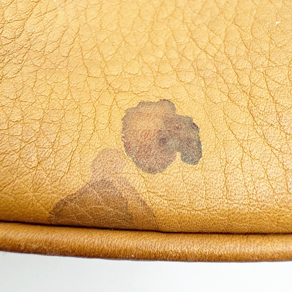 Overall in good condition. Looks lightly used. However this has a noticeable stain/ mark on one side of bag near the bottom of bag. Unsure if it can be treated and restored. Selling as is. Some minor pen marks on leather also and minor marks on bottom. Please review pics. Inside is clean.