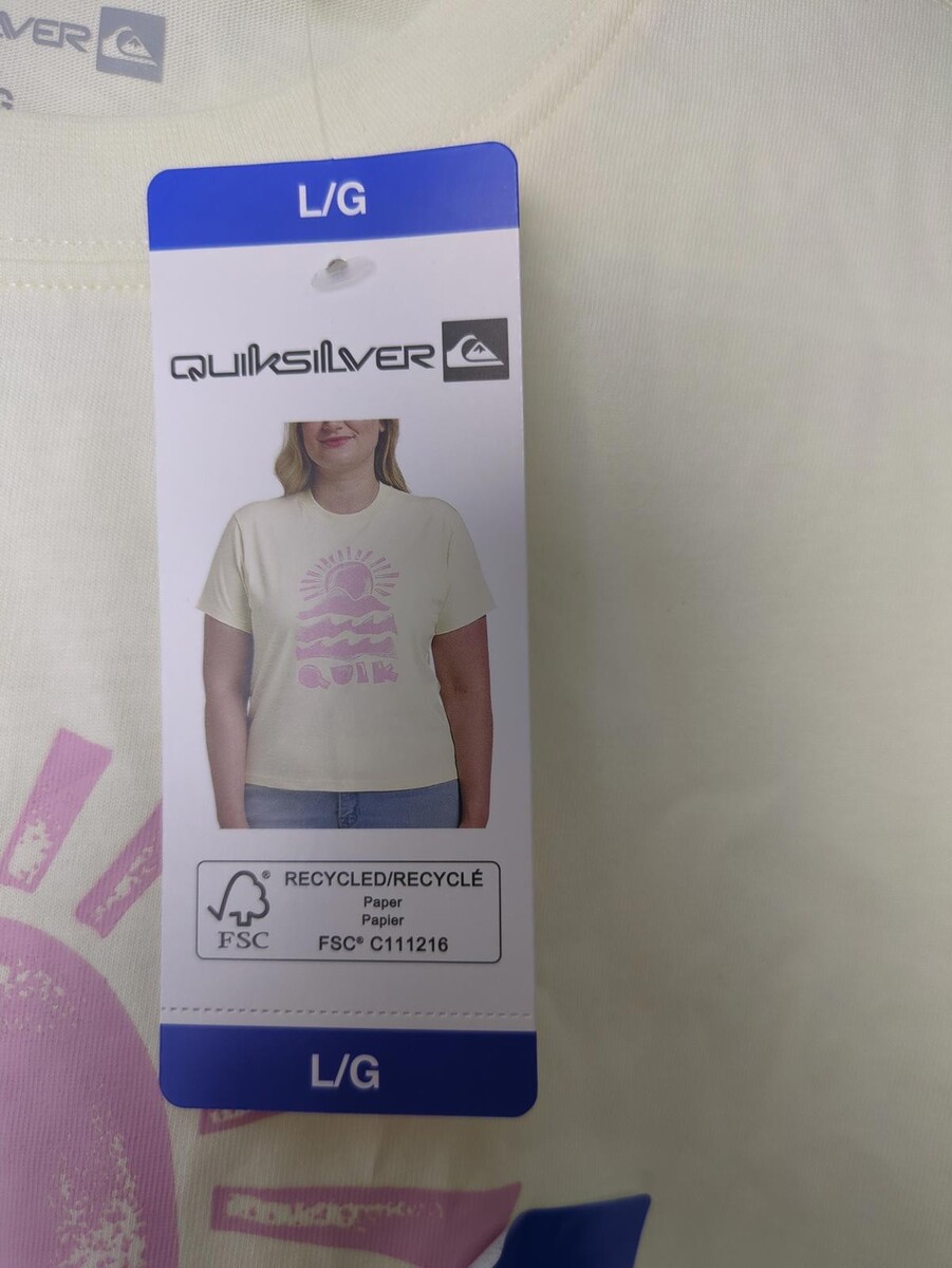 Quiksilver Women's Cream and Pink Graphic T-Shirt - L - NWT