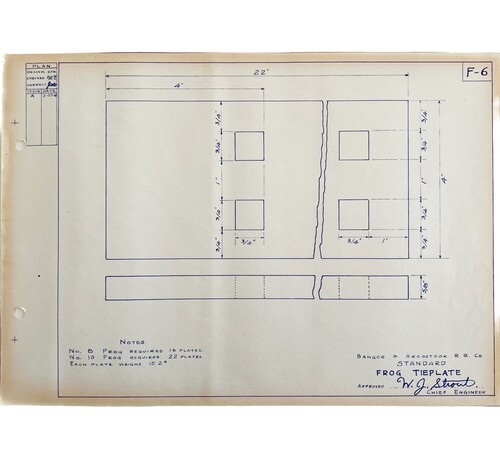 1941 Railroad Bangor Aroostook Standard Frog Tieplate Blueprint F6 DWDD15