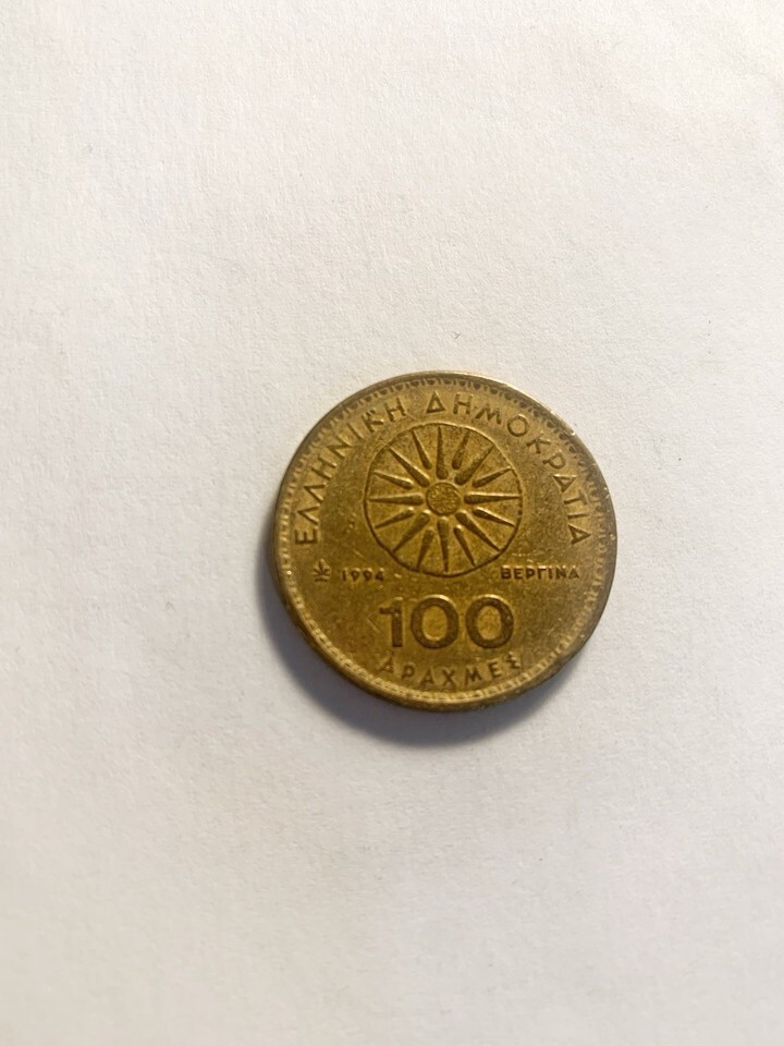 1994 Greece 100 Drachmai Coin Alexander the Great Vergina Sun