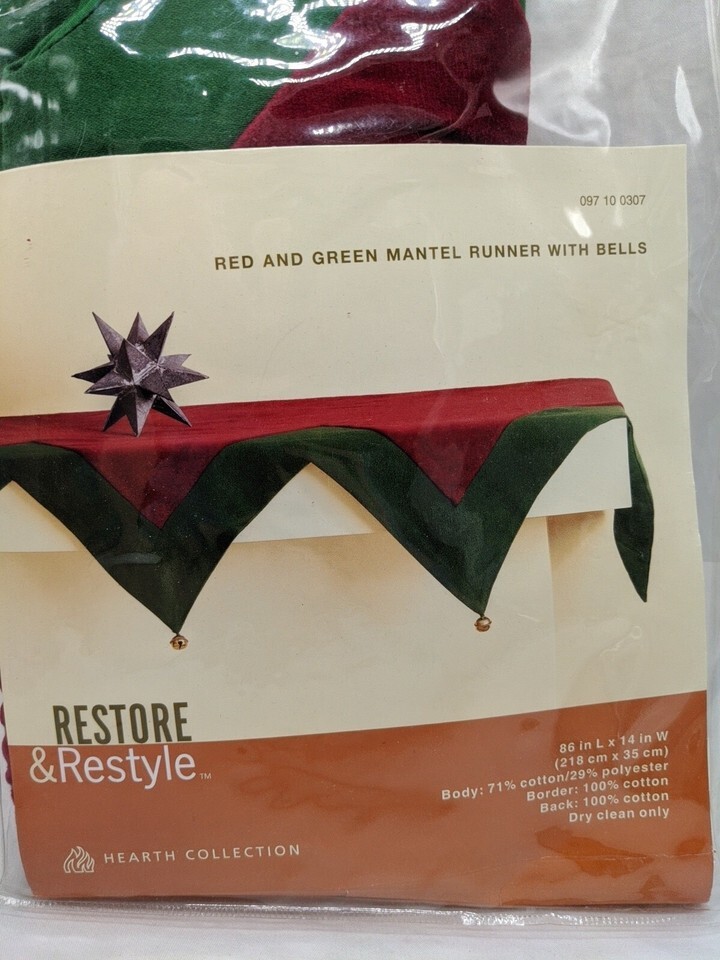 Christmas Hearth Collection Red And Green Mantel Runner With Bells 86" X 14"