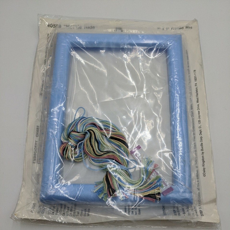Bucilla Daisy Kingdom Counted Cross Stitch Bunnies Horsie Ride Kit Frame. Combined Shipping (for USA Customers Only)