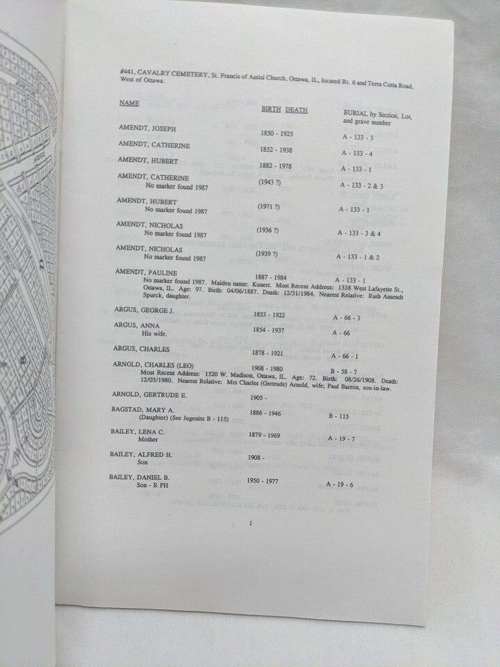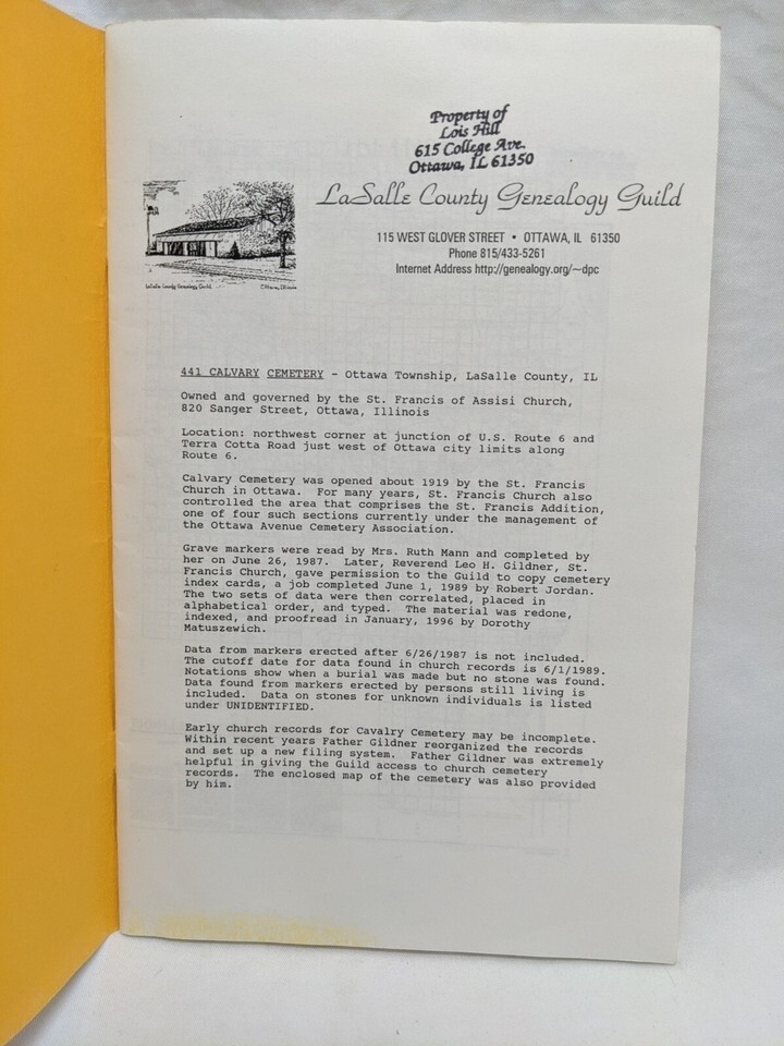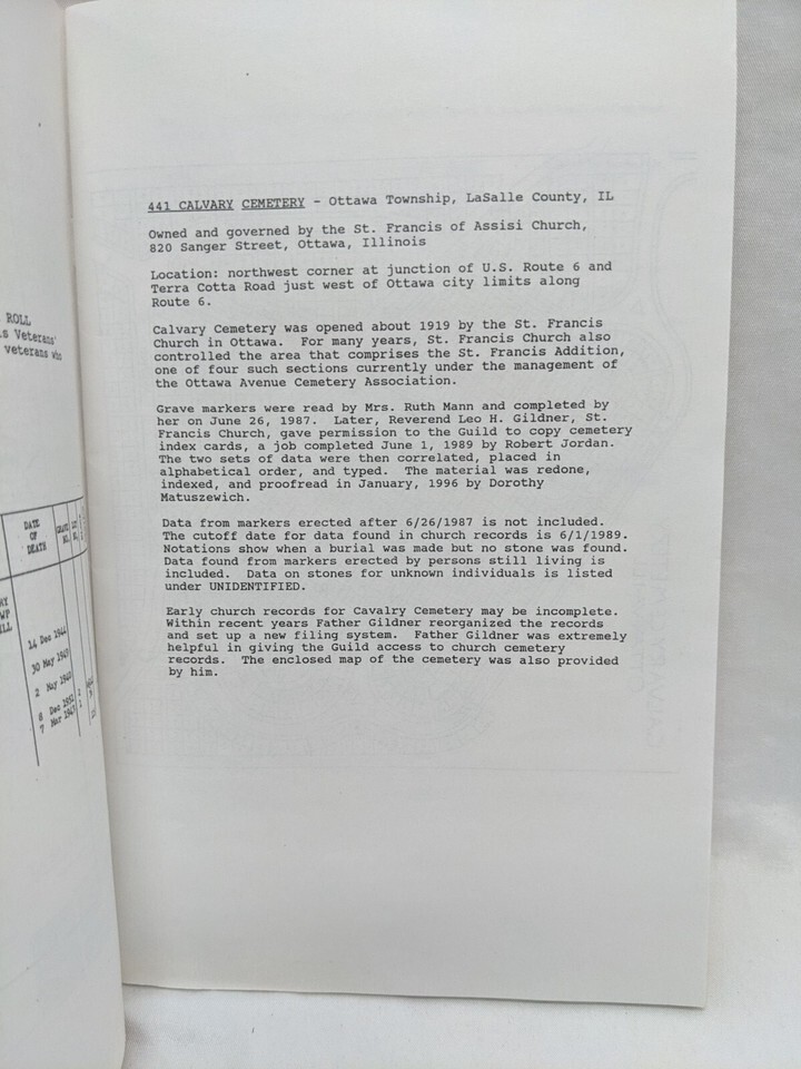 Ottowa Illinois 441 Calvary Cemetery Lasalle County Genealogy Guild