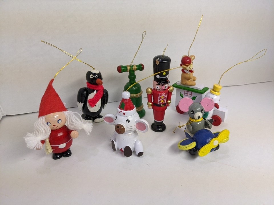 Lot Of (8) Vintage Wooden Christmas Toy Hanging Ornaments