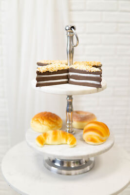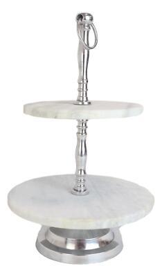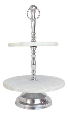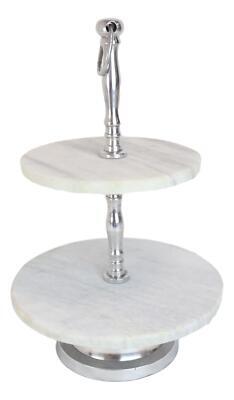 Contemporary 2 Tier Dining Tabletop Marble Aluminum Serving Platter Tray Stand