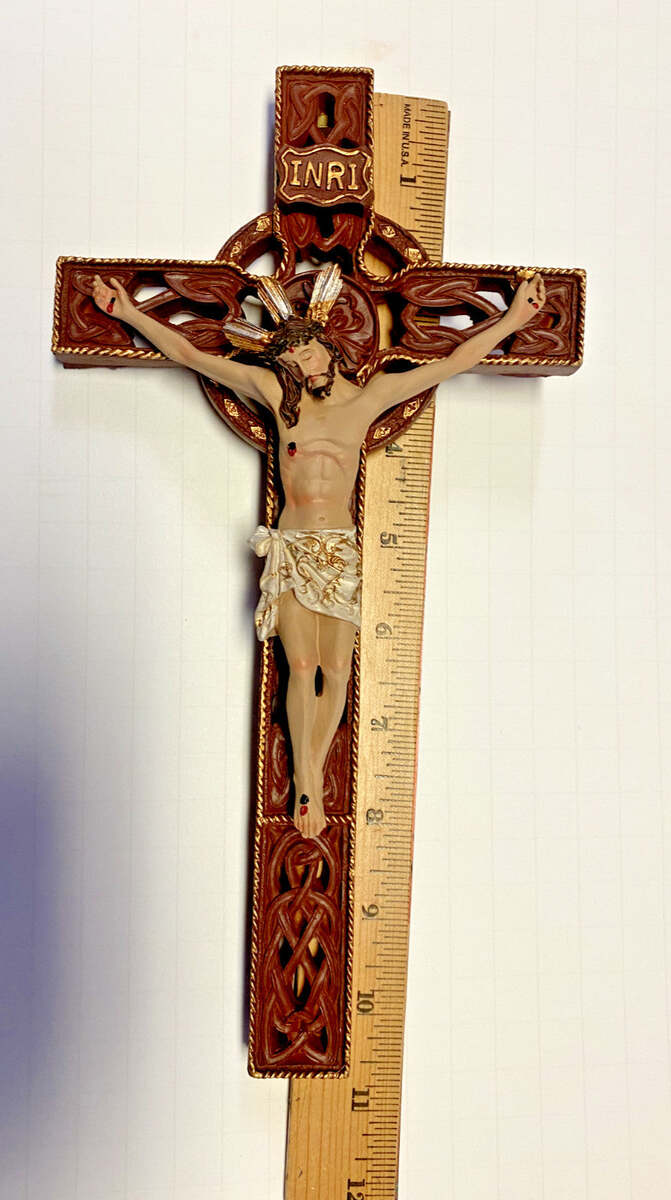 Your purchase is for a beautiful ornate Celtic wall crucifix that measures 10" H. See pictures for details size.