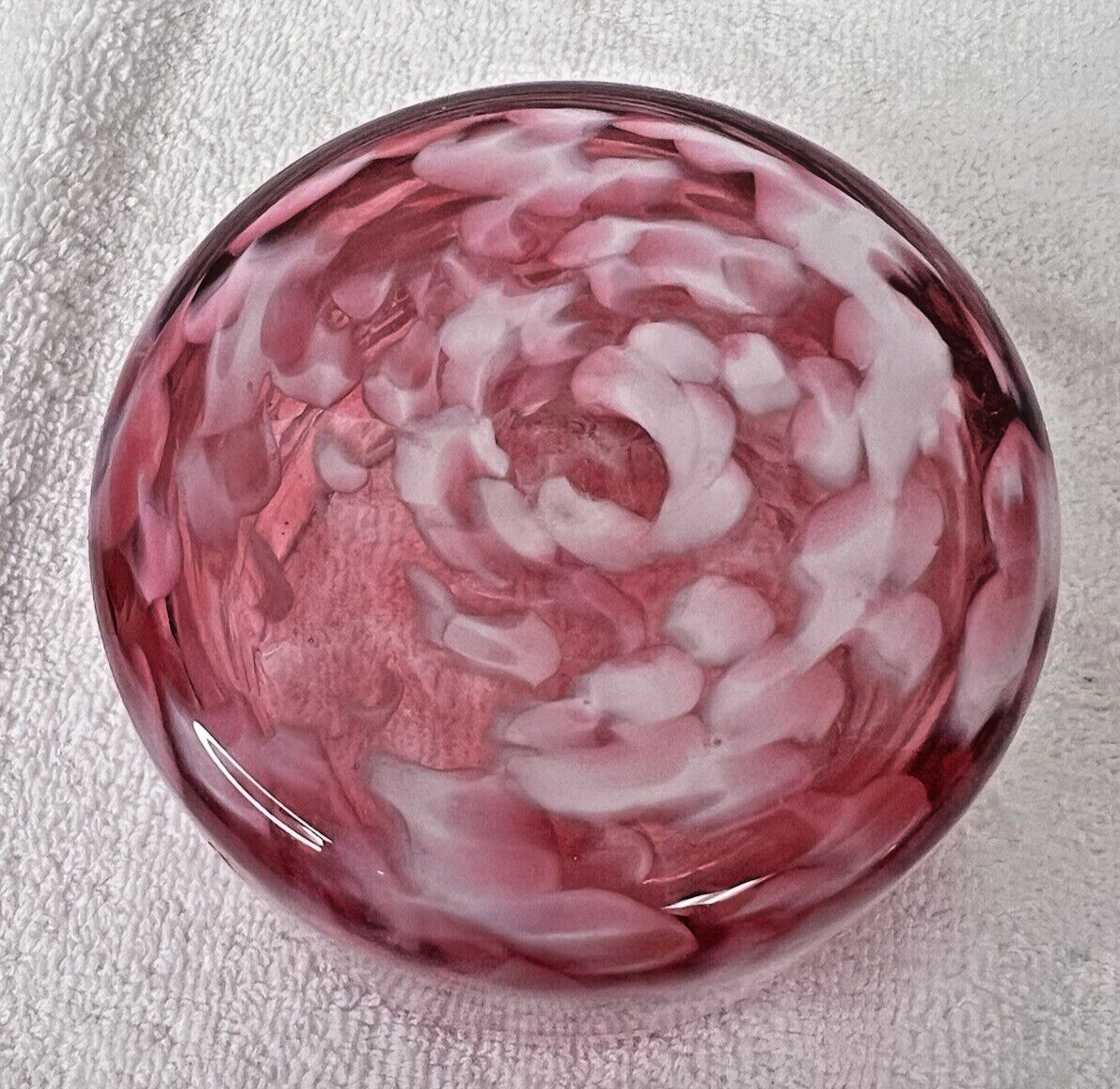 Cranberry Pink White Speckled Mouth Blown Glass Cup Vessel 3 1/4 Tall x 3 3/8 Wide In very good shape no chips or breaks