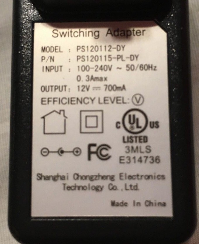 SHANGHAI CHONGZHENG ELECTRONICS 12 VOLT SWITCHING POWER SUPPLY ADAPTER