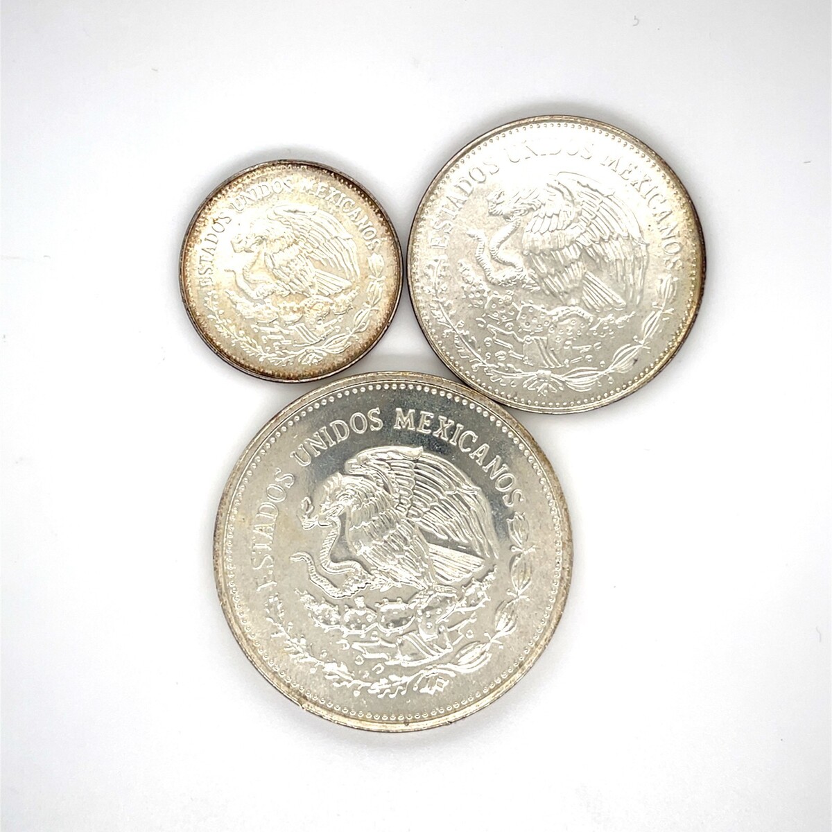 1985 Mexico Pesos: 25, 50, 100 - 3 Coin Lot - 1986 World Cup - 72% Silver