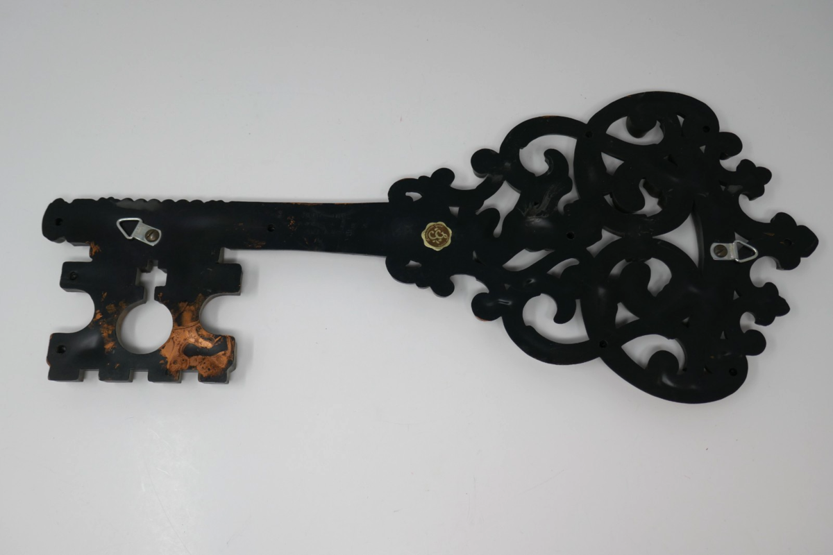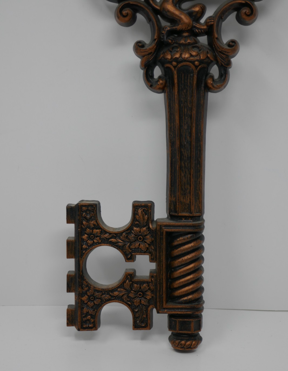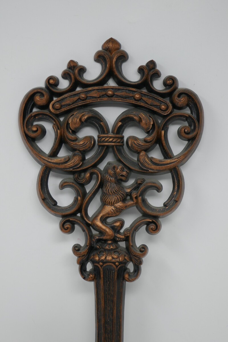 The Dart Syroco Lion Key Wall Art Decor from the 1960s is a unique and decorative piece for any vintage or mid-century inspired space. This measures approx. 18" long and 7.5" wide. Made in the United States, this wall art showcases a stylish design with a lion motif that adds a touch of retro flair to any room. Perfect for collectors of vintage decor, this piece is a striking addition to any wall and showcases the craftsmanship and style of the 1960s.