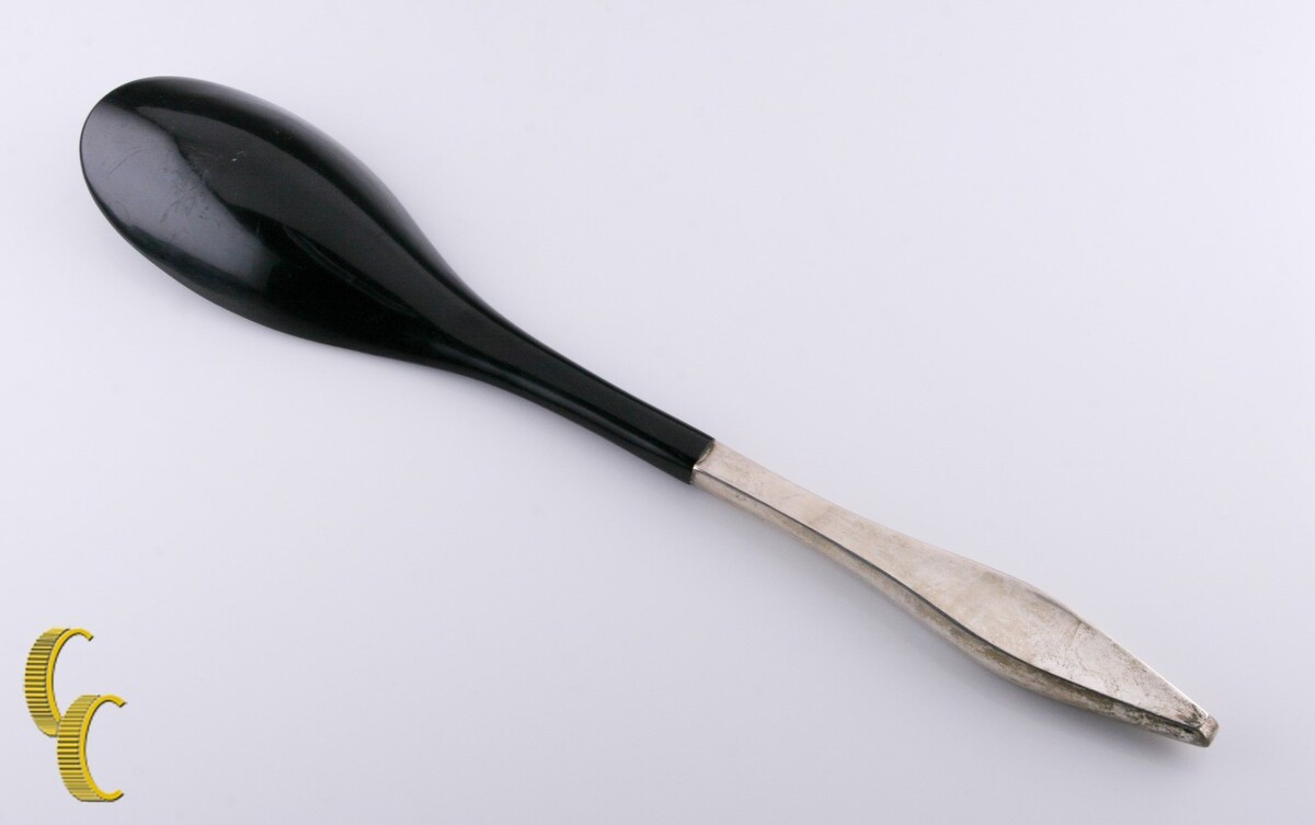 Metà Secolo Moderno Insalata Cucchiaio Argento Sterling & Plastica Starburst