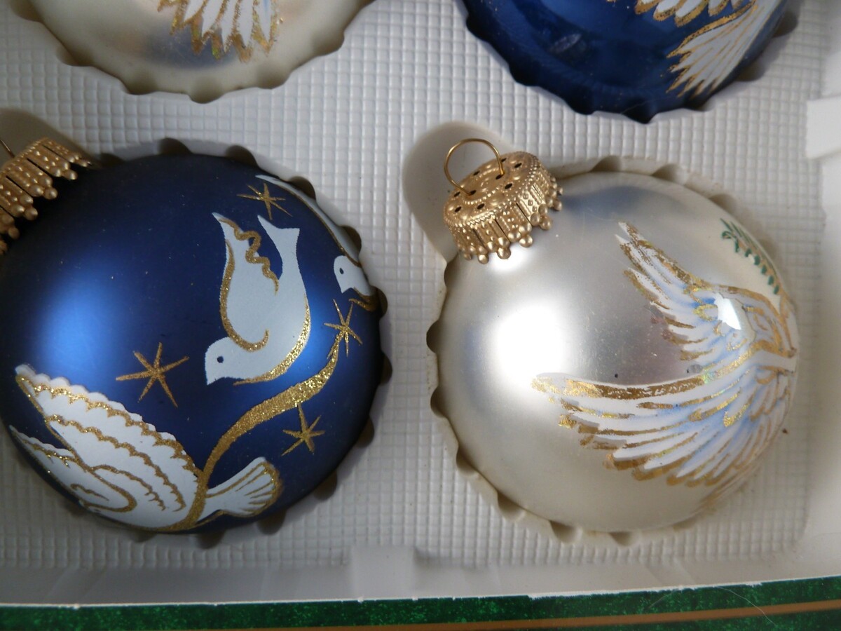Vintage Krebs Elegant Glass Christmas Ornaments Doves Blue and White with Gold