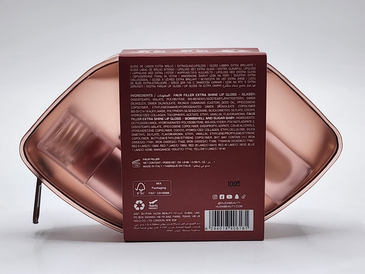 HUDA BEAUTY Mini Glossiest Lip Gloss Set 3pc Gift Glassy, Sugar Baby, Bombshell.